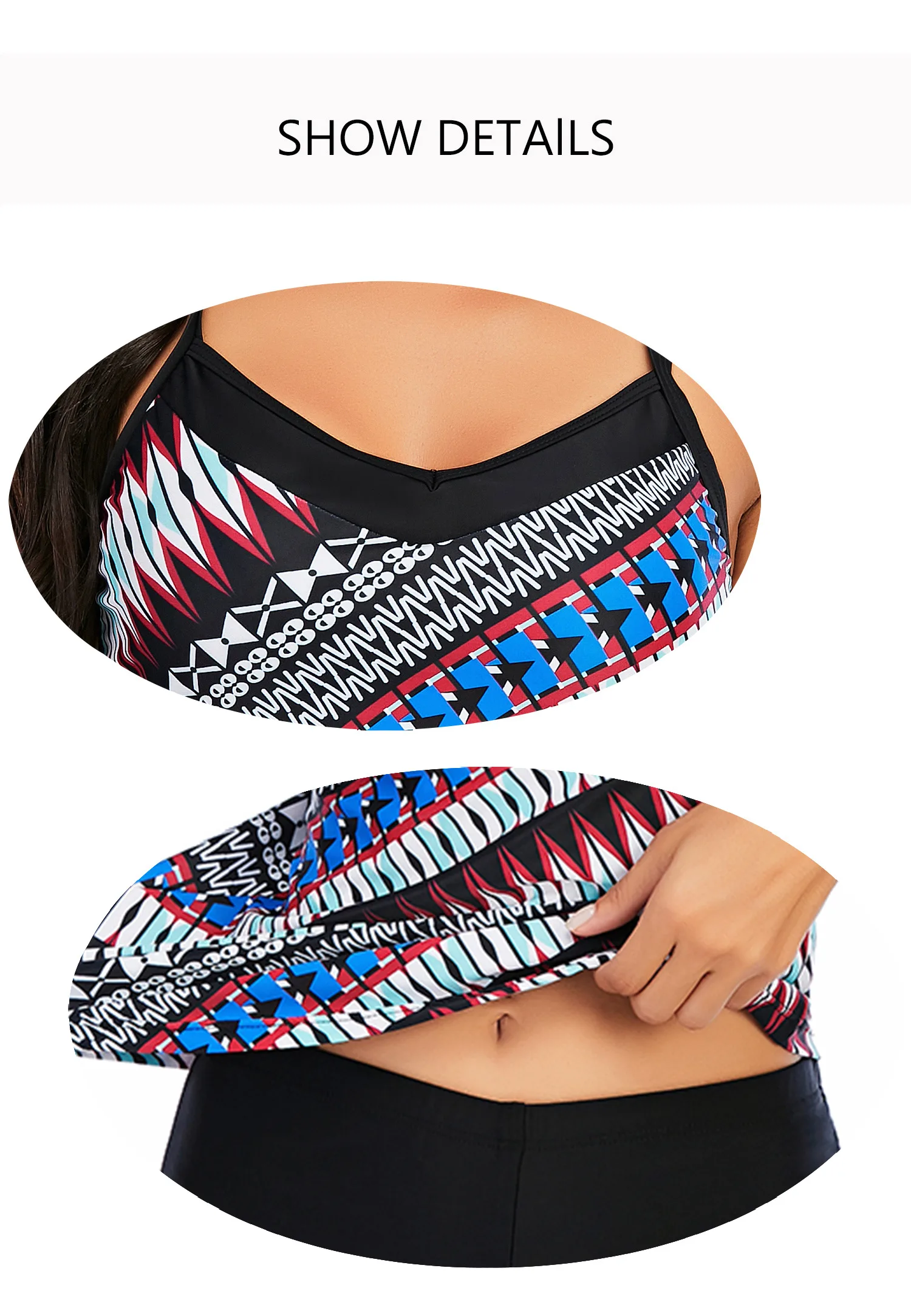 Танкини наборы с трусиками 2021 сексуальные женские купальники из двух частей РЕТРО ПРИНТ купальники бикини пуш-ап купальники размера плюс XXL