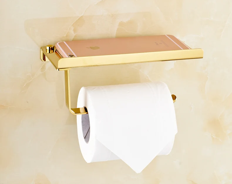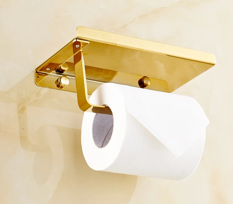 Держатель для бумаги и телефона из нержавеющей стали для ванной комнаты с полкой для мобильных телефонов, золотой держатель для туалетной бумаги