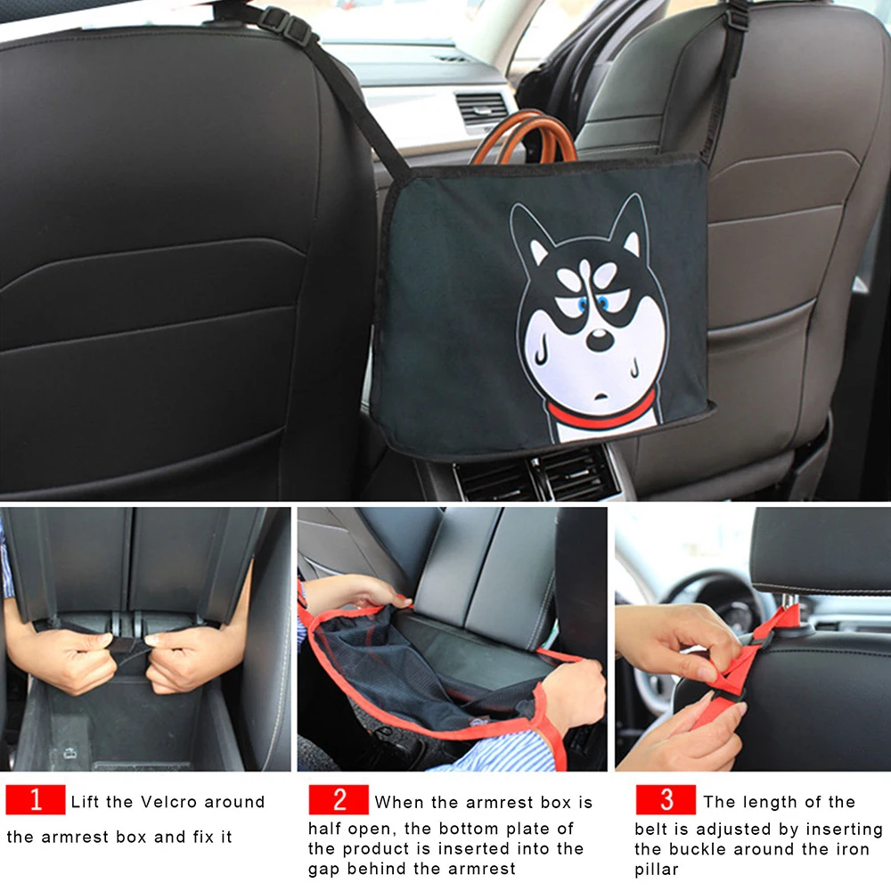 1. Автомобильный держатель сумки полностью покрывает пространство между двумя первых сидениями, что делает их вашим дополнительным пространством для хранения. Согласно разному пространству между водителем и пассажирским сиденьем, его можно растянуть до размера prope.