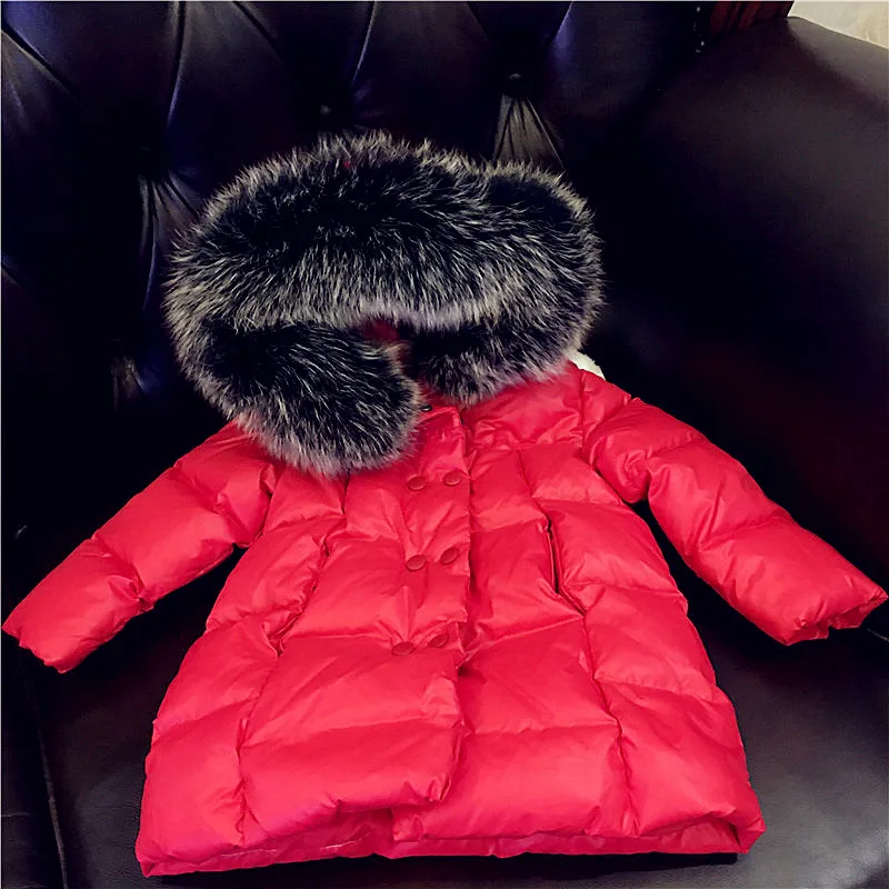 Новый длинный белый пуховик для девочек, детская зимняя одежда для малышей, воротник из натурального Лисьего меха