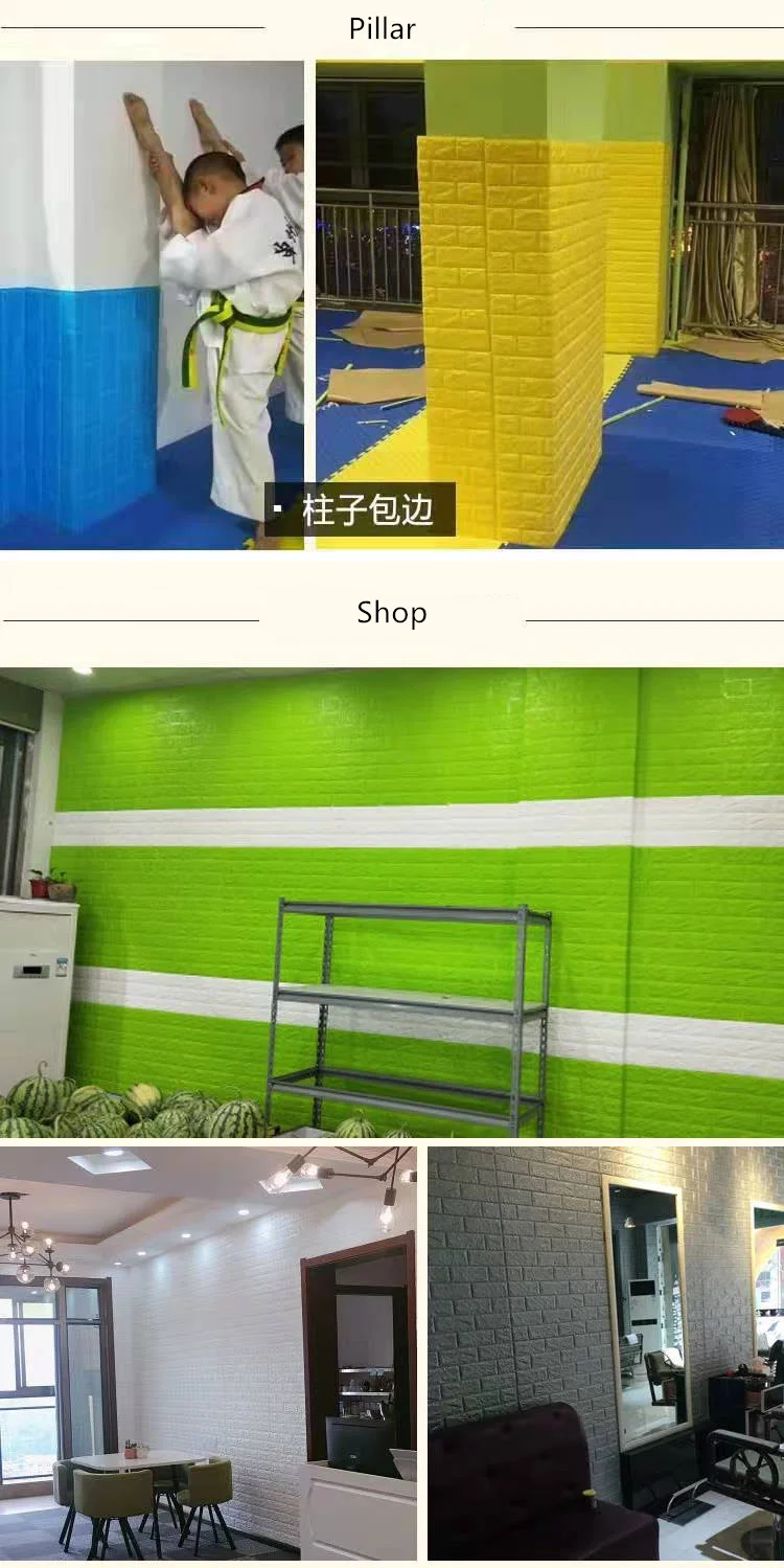 Характеристика: 1: трехмерная декоративная мягкая пена, защита от столкновений для детей, забота о вашей семье. 2: Безопасность и защита окружающей среды, нетоксичный запах, подходит для семейного безопасного домашнего пространства. 3: Реалистичный, естественный эффект кирпичного узора, простой и современный стиль. 4: Бесплатный DIY, простой самоклеящийся дизайн, установка, повседневный коллаж, произвольный крой. 5: сравнение обоев с улучшенным эффектом шумоподавления.