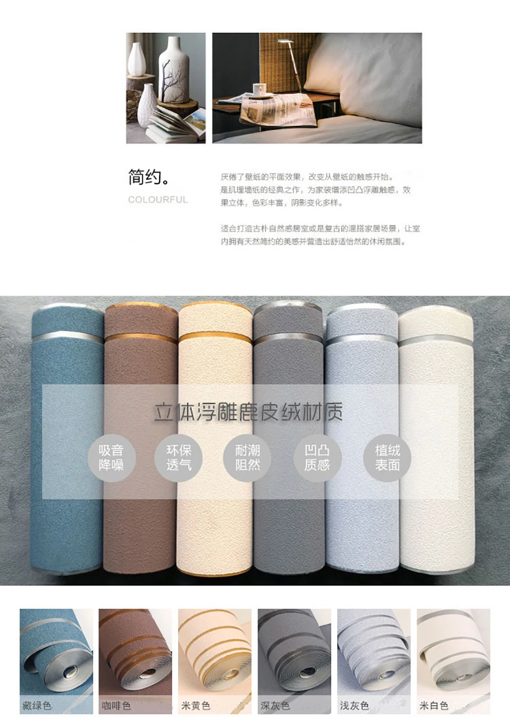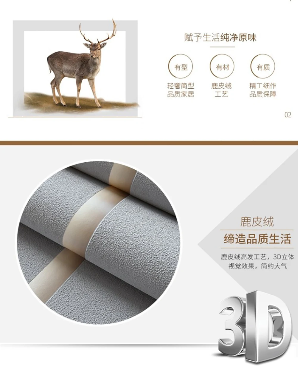 Современные нетканые ткани утолщенная имитация оленьей шкуры обои Скандинавский минималистский стиль толстый и прочный W94