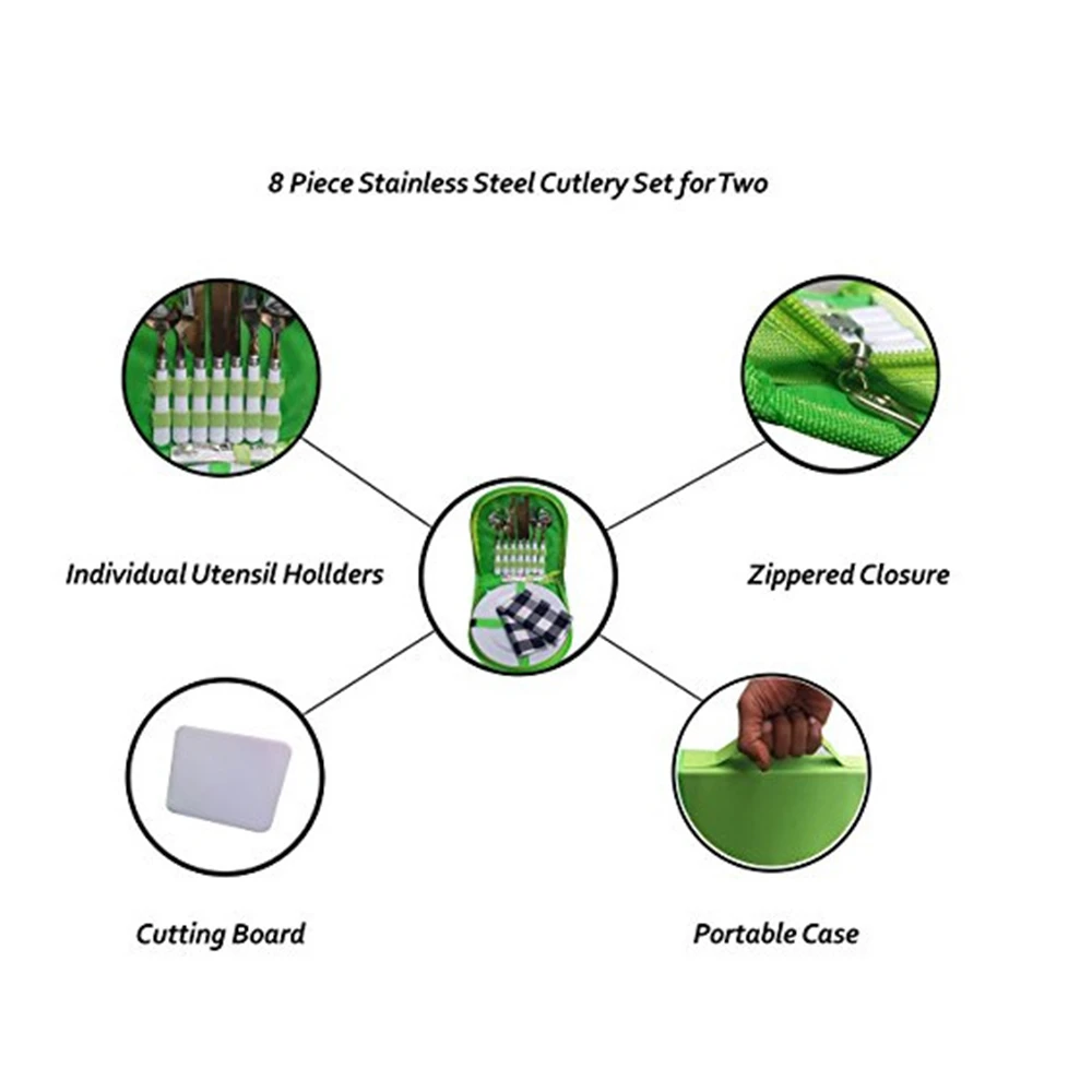 1. Сильная применимость.Набор столовых приборов из нержавеющей стали из восьми частей для двух. Включая съемные вилки, ложки, разделочную доску, штопор, пластину и пластинчатый коврик, который можно использовать во время путешествий или кемпинга.