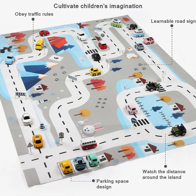 Поставляется с моделированием дороги в деревне, конструкцией парковки, дизайном изогнутой дороги и дизайном следов животных, очень близко к нашей реальной жизни, с ним вы можете научить вас, дети, очень значимый и обучающий.