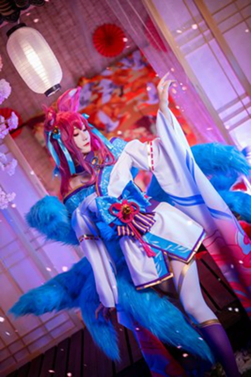 ☃Костюмы для косплея LOL Fox Ahri, костюм для косплея с девятью хвостами лисы, кимоно, маскарадное платье, хвосты для взрослых, костюмы на Хэллоуин, реквизит
