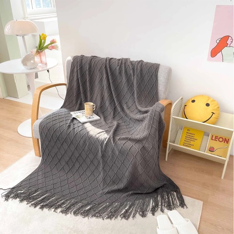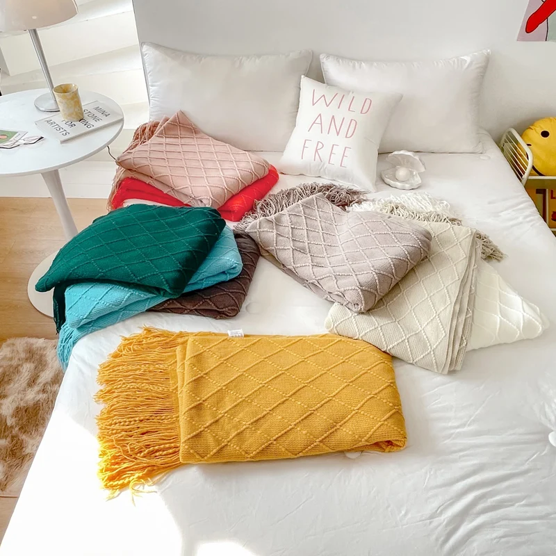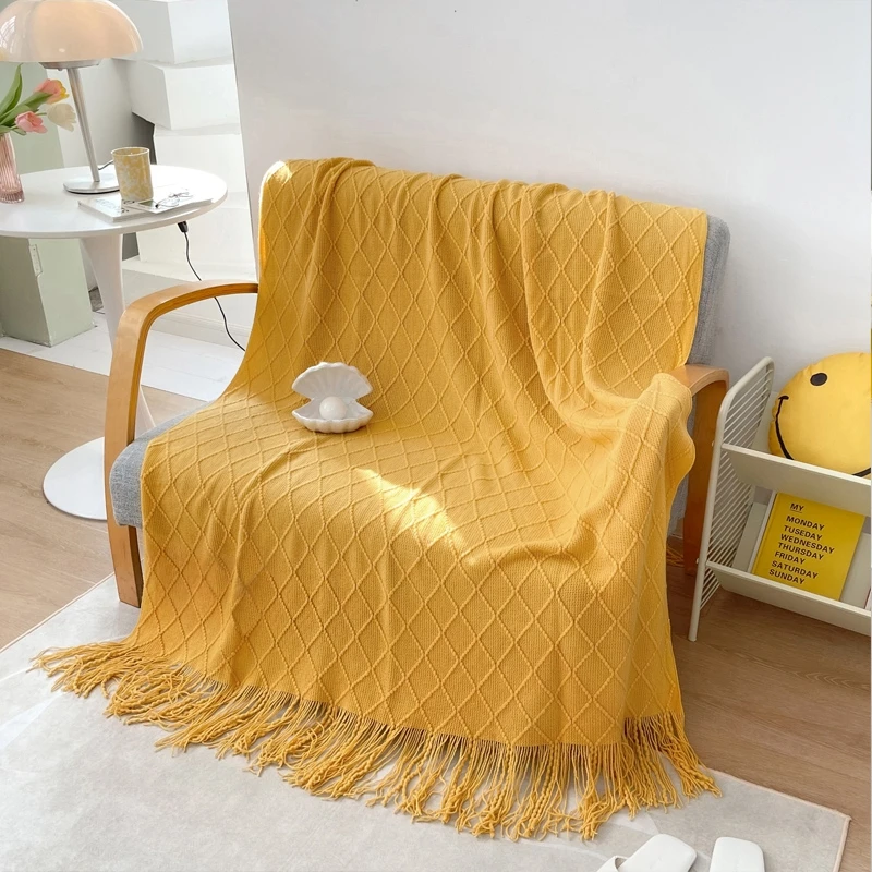 Новинка, Скандинавское вязаное одеяло с кисточками, зеленое, желтое, одноцветное, многофункциональное, акриловое, для дивана, кресла, кровати, Декор, покрытие, четыре сезона, домашний текстиль