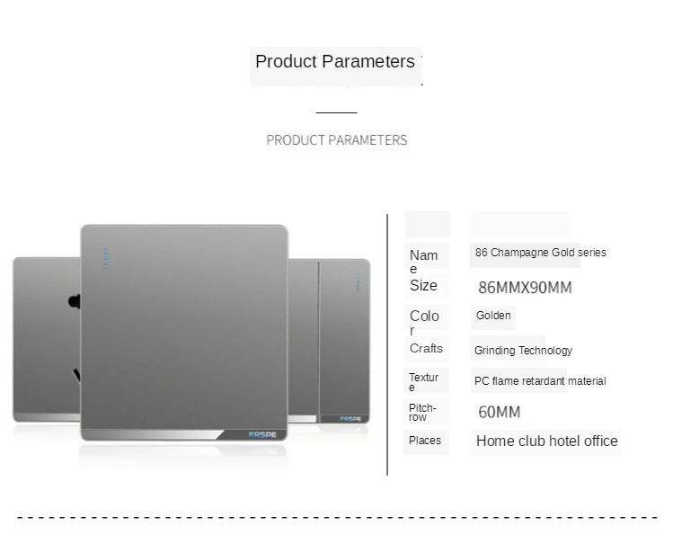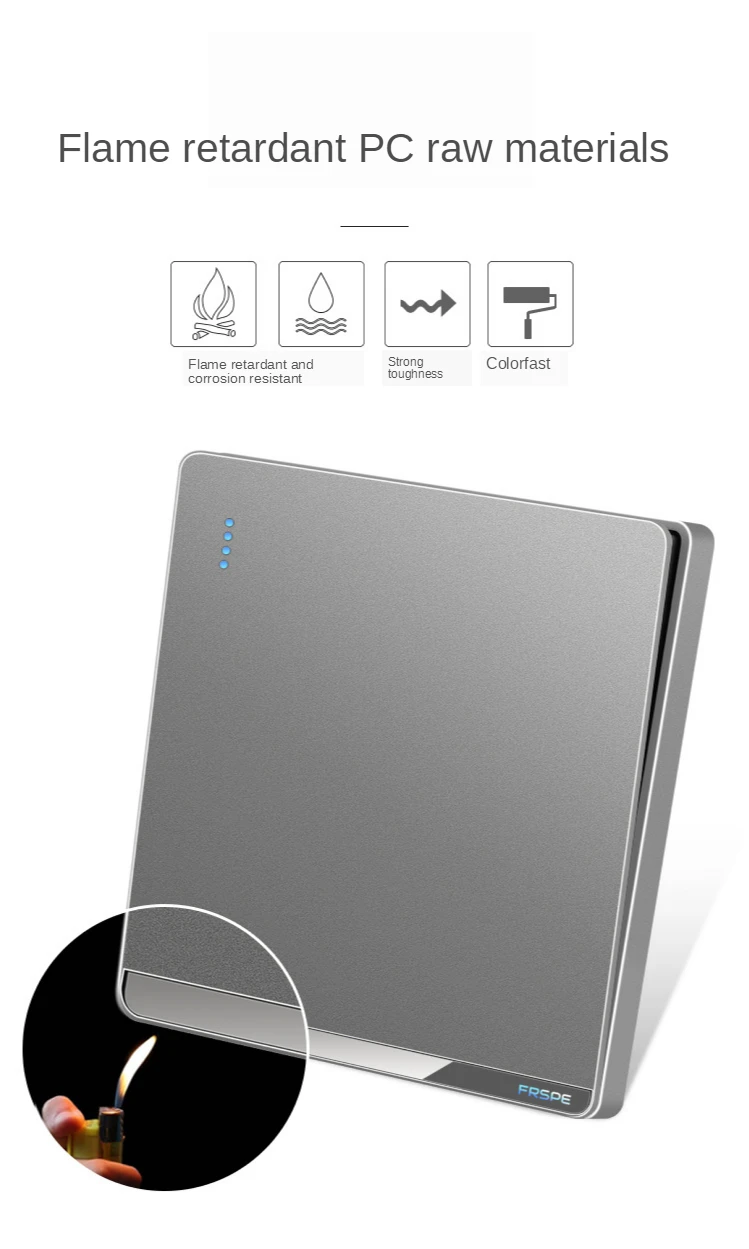 Название продукта: 86 мм серый ПК Панель переключатель набор Номинальное напряжение: 250 В Номинальный ток: 10A Материал панели: PC Цвет: серый Расстояние между установочными отверстиями: 60 мм Размер продукта: 86*86 мм Сертификаты: CCC