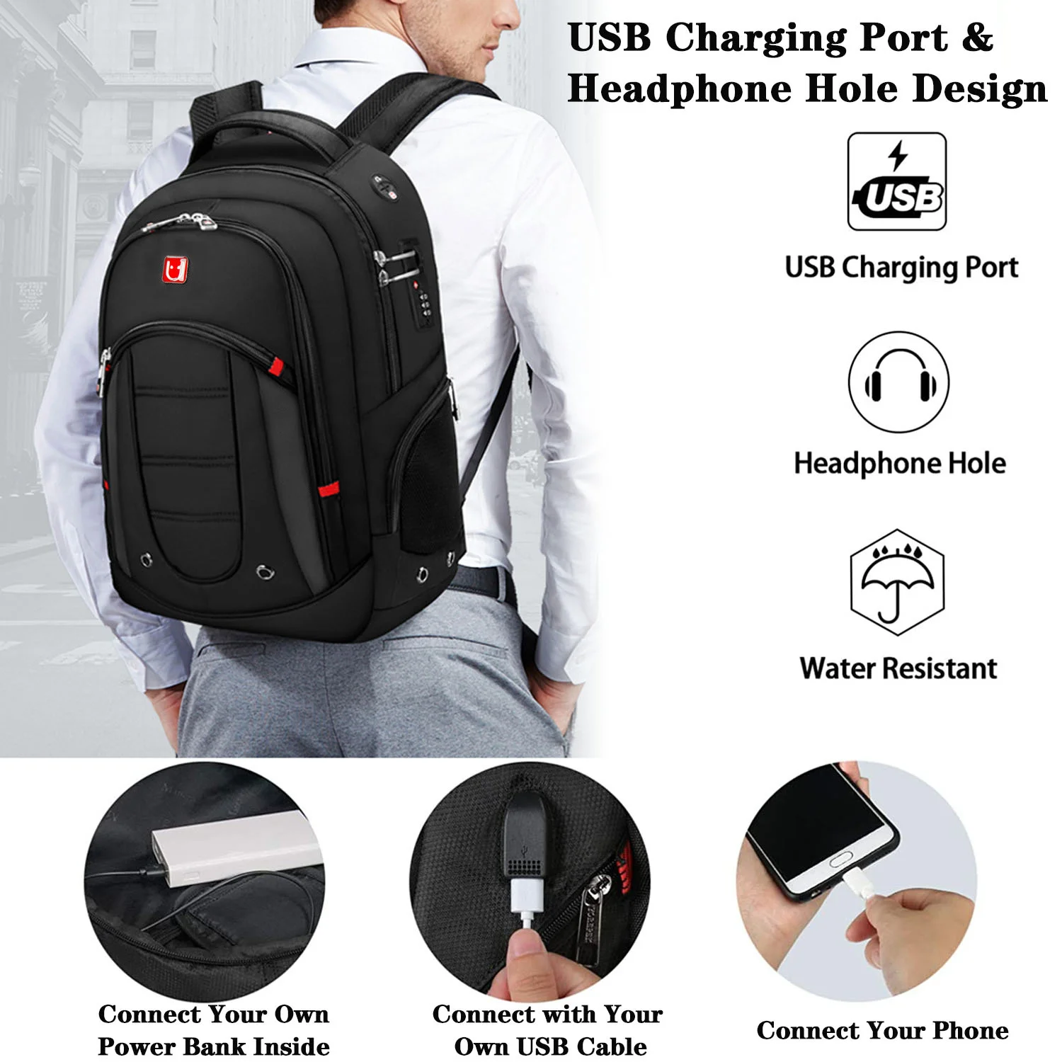 Внешний usb-порт для зарядки со встроенным зарядным кабелем легко заряжает ваш смартфон (только usb-порт, внешний аккумулятор не входит в комплект).