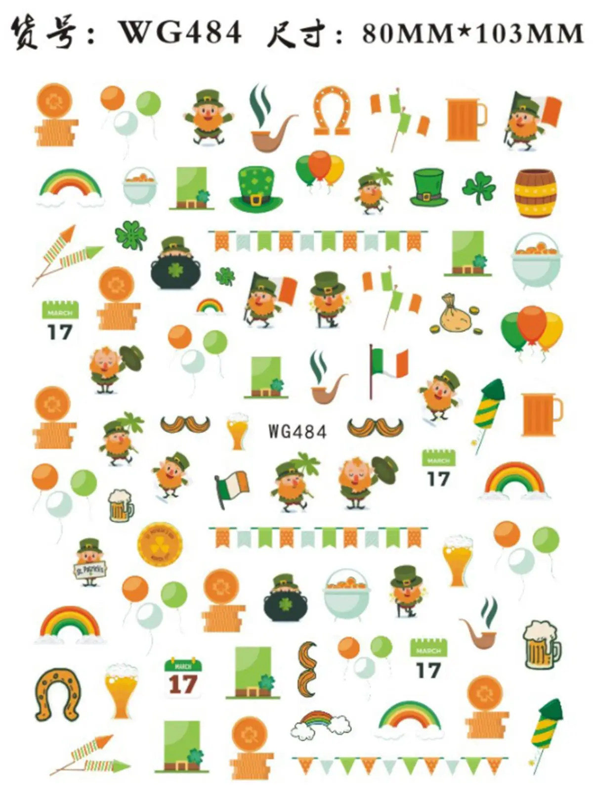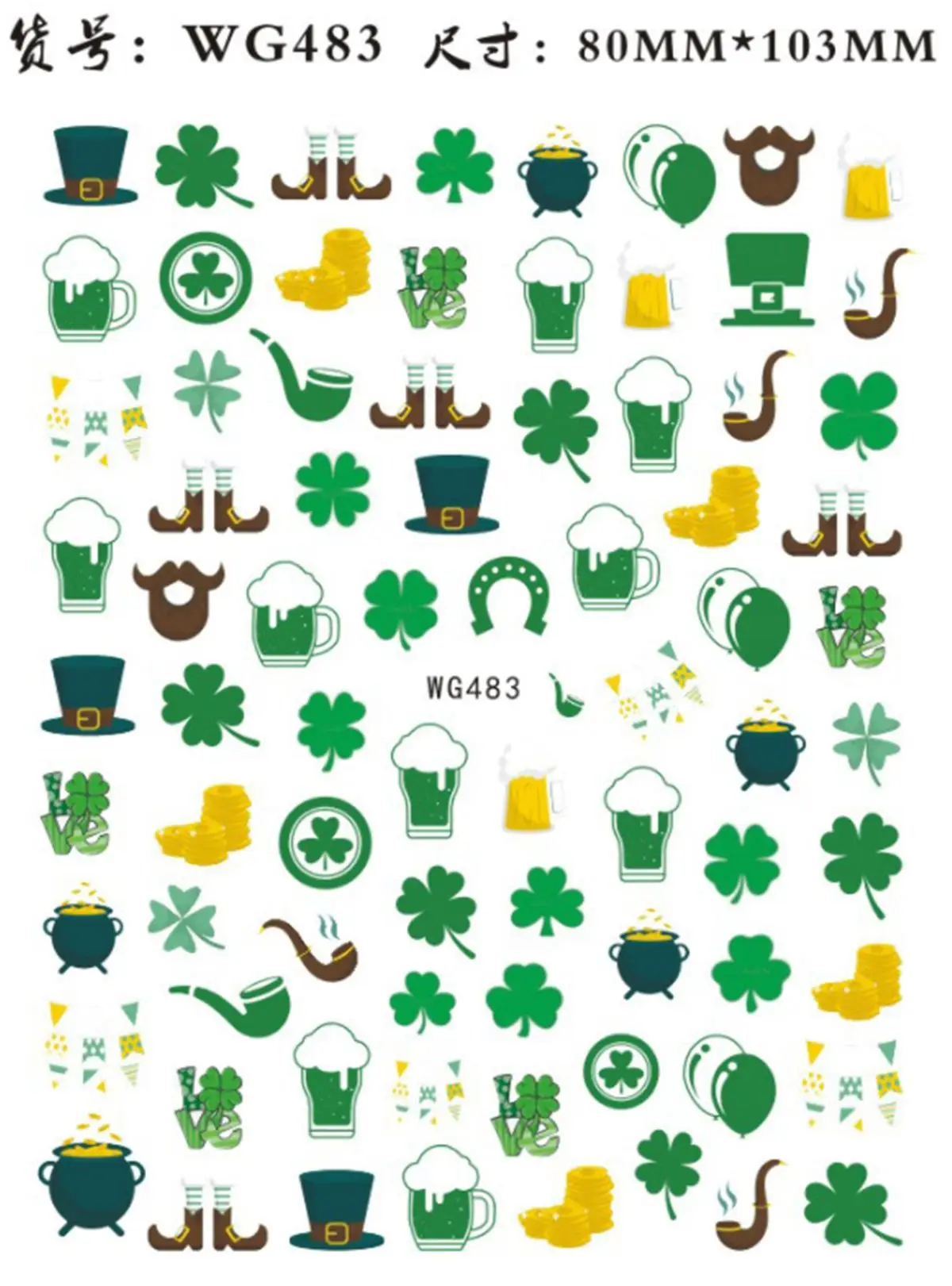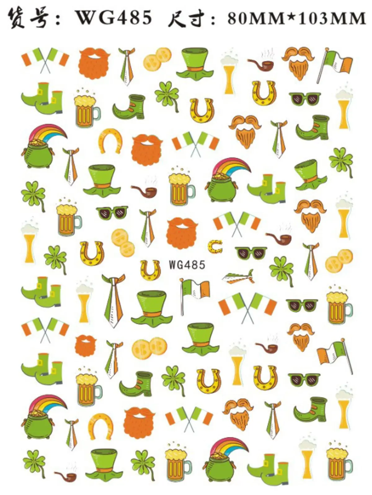 Morixi стикер для дизайна ногтей на День Святого Патрика зеленые листья шляпа Совы печать ультра тонкий задний клей для нейл-арта наклейки для дизайна ногтей WG056