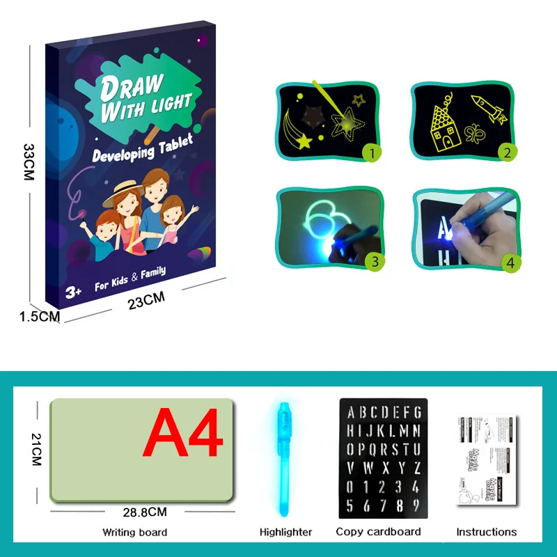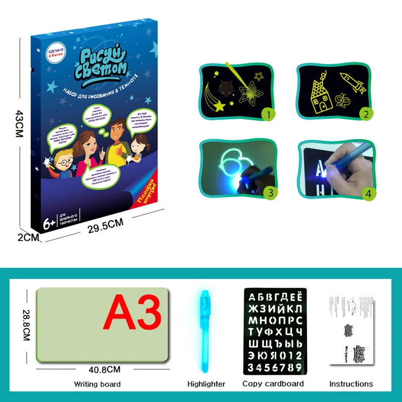 1 Набор обучающая доска для рисования с игрушками на русском и английском языках A3 A4 A5 планшет граффити Led светящаяся Волшебная сырье с светильник-веселые дети