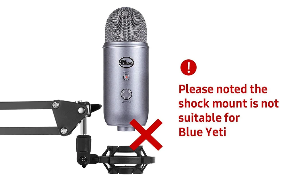 Амортизатор для микрофона может эффективно уменьшить шум и вибрацию, вызванные микрофоном, чтобы обеспечить высокую точность звука. (Обратите внимание, что ударное крепление не подходит для Blue Yeti)