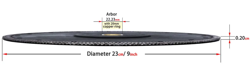 Диаметр пильного диска: 230 мм Размер: (дюйм) 9" Высота сегмента: 10 мм Толщина сегмента: 2 мм Беседка: 22,23 мм Посылка: 1 шт.