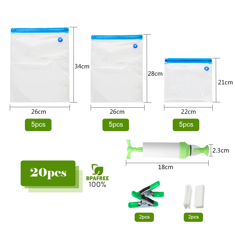 15 х вакуумных пакетов для пищевых продуктов (5 маленьких; 5 средних; 5 больших)
