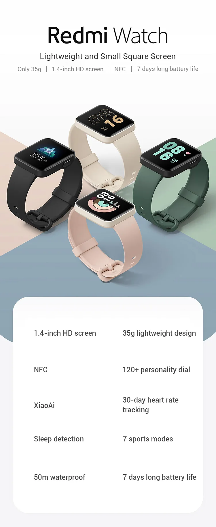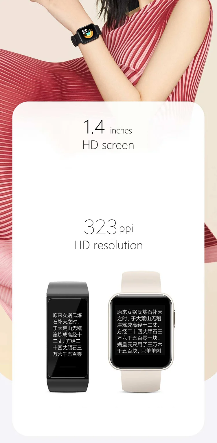 Xiaomi Redmi Watch, 1,4 дюймов, высокое разрешение, большой экран, для мужчин и женщин, Смарт-часы, пульсометр, монитор сна, IP68, водонепроницаемый трекер
