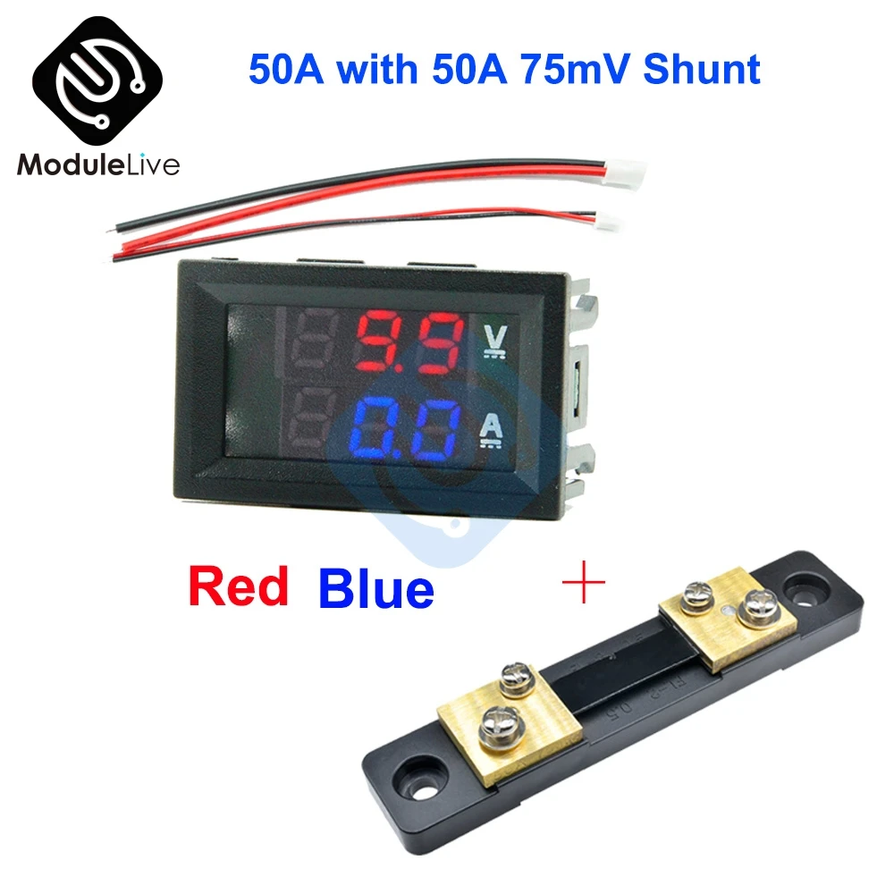 1 х Dc 100v 50a цифровой вольтметр Амперметр постоянного тока вольт ампер постоянного тока Вольтметр Амперметр + 50A75mV FL-2 50A 75mV шунта Цифровой вольтметр автомобиля модуль
