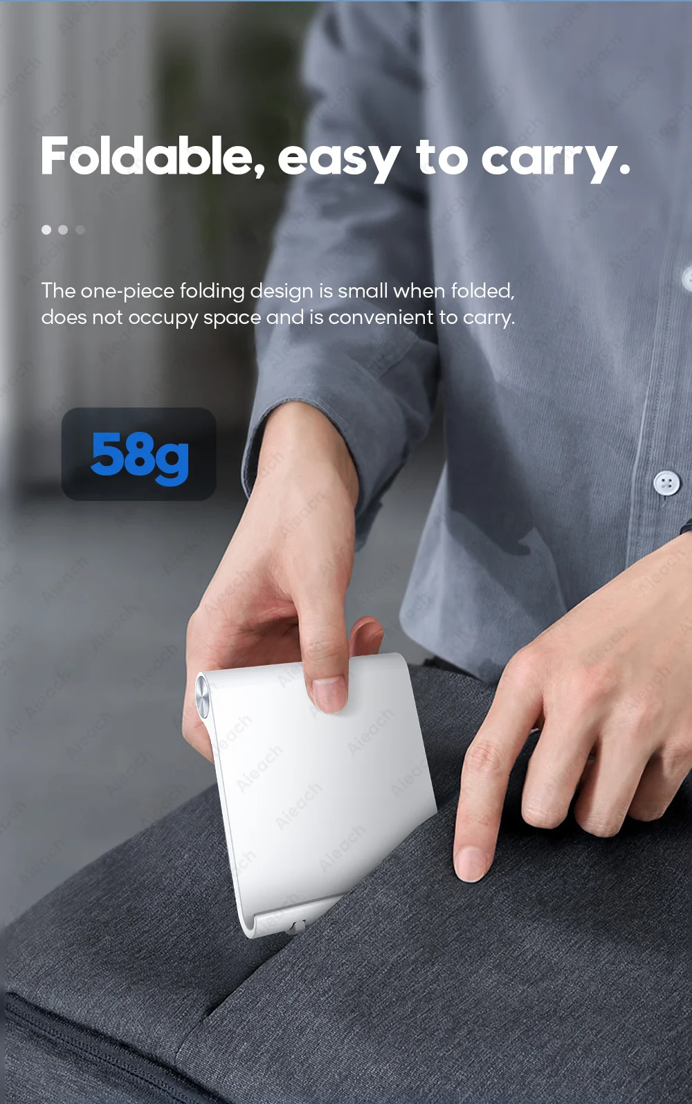 Сплошная складная конструкция небольшая в сложенном виде, Не занимает места и удобно носить с собой. Вес составляет около 58 г, вес измеряется вручную, возможны небольшие погрешности.