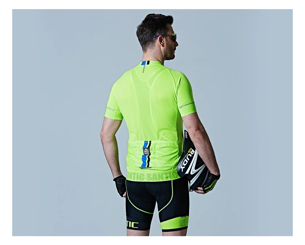 Santic майки для велоспорта для мужчин дышащие Нескользящие рубашки с коротким рукавом MTB дорожный велосипед на молнии велосипедная спортивная куртка с карманами