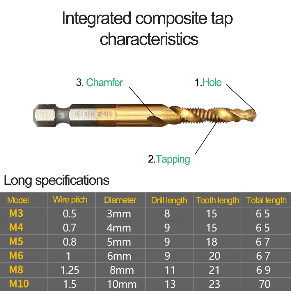 Вариант: 1 шт. (M3/M4/M5/M6/M8 или M10)(короткое или длинное) Сверло HSS