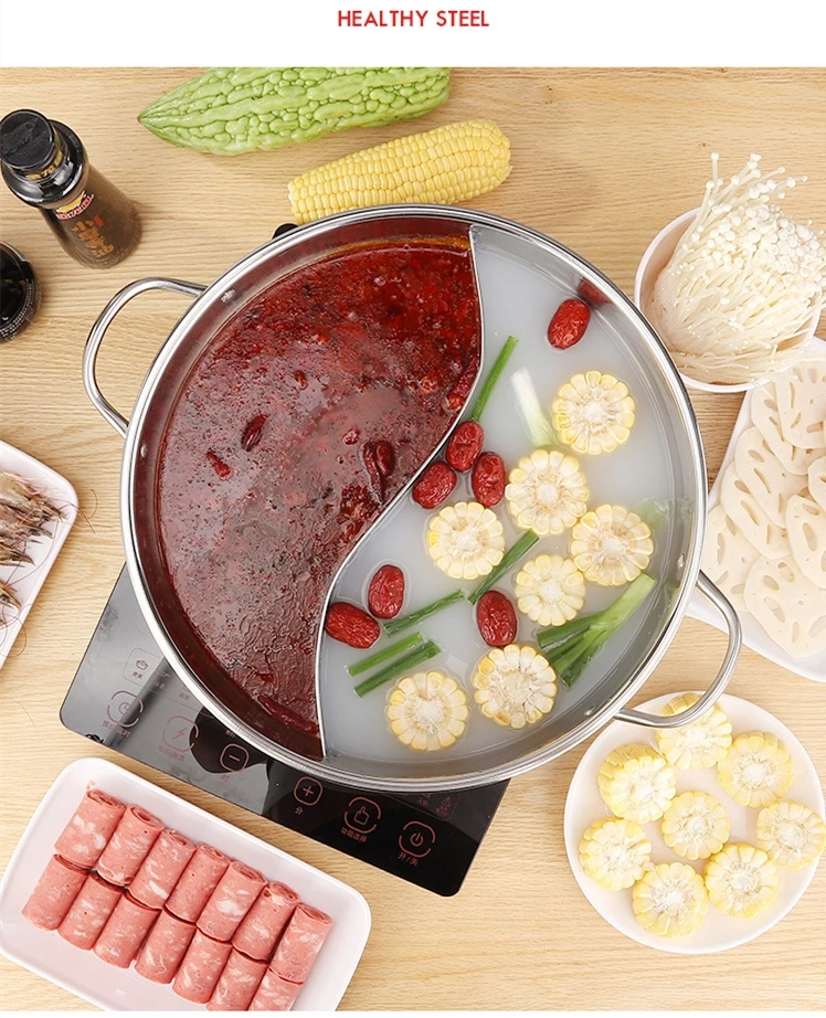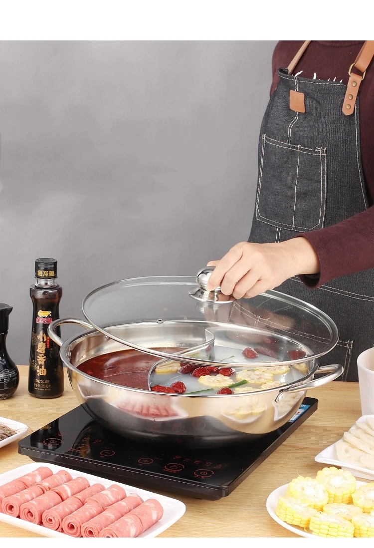 Не думайте, насколько таинственная китайская еда. На самом деле, китайская еда очень проста, особенно горячий горшок. Метод очень прост. Пока вы готовите ингредиенты, вам нужно только следовать рецепту и вы скоро сможете попробовать вкусные! (Обязательно спросите нашу прекрасную службу поддержки клиентов, как готовится горячий горшок после заказа). Этот горшок является специальным горшком для горячего горшка. Он разделен на две части. Можно делать разные супы по вкусу каждого. Вы можете выбрать любой из сладких, кислых, горьких, пряных и соленых, плюс ваш любимый погружной соус, боже мой! Теперь я могу почувствовать запах еды! (Длина размера представляет внешний диаметр горшка). Различные сценарии адаптации, можно использовать индукционную плиту, газовую плиту, плиту, очень удобно.