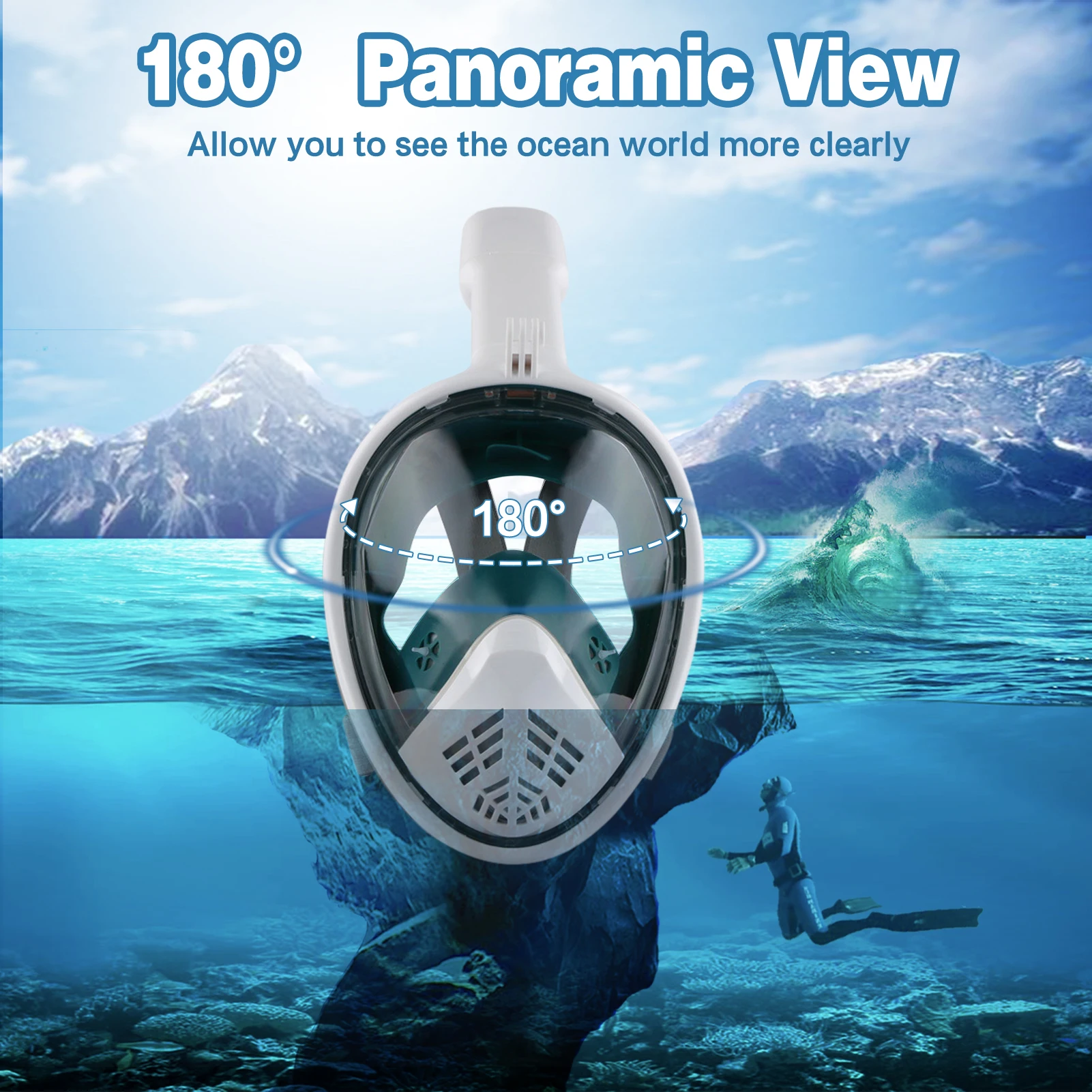 Этот вид маски для снорклинга может свободно дышать двойными трубами. Это воды устойчив к атмосферным воздействиям и имеет широкий угол обзора. Это может помочь пользователям четко изучить подводный мир.