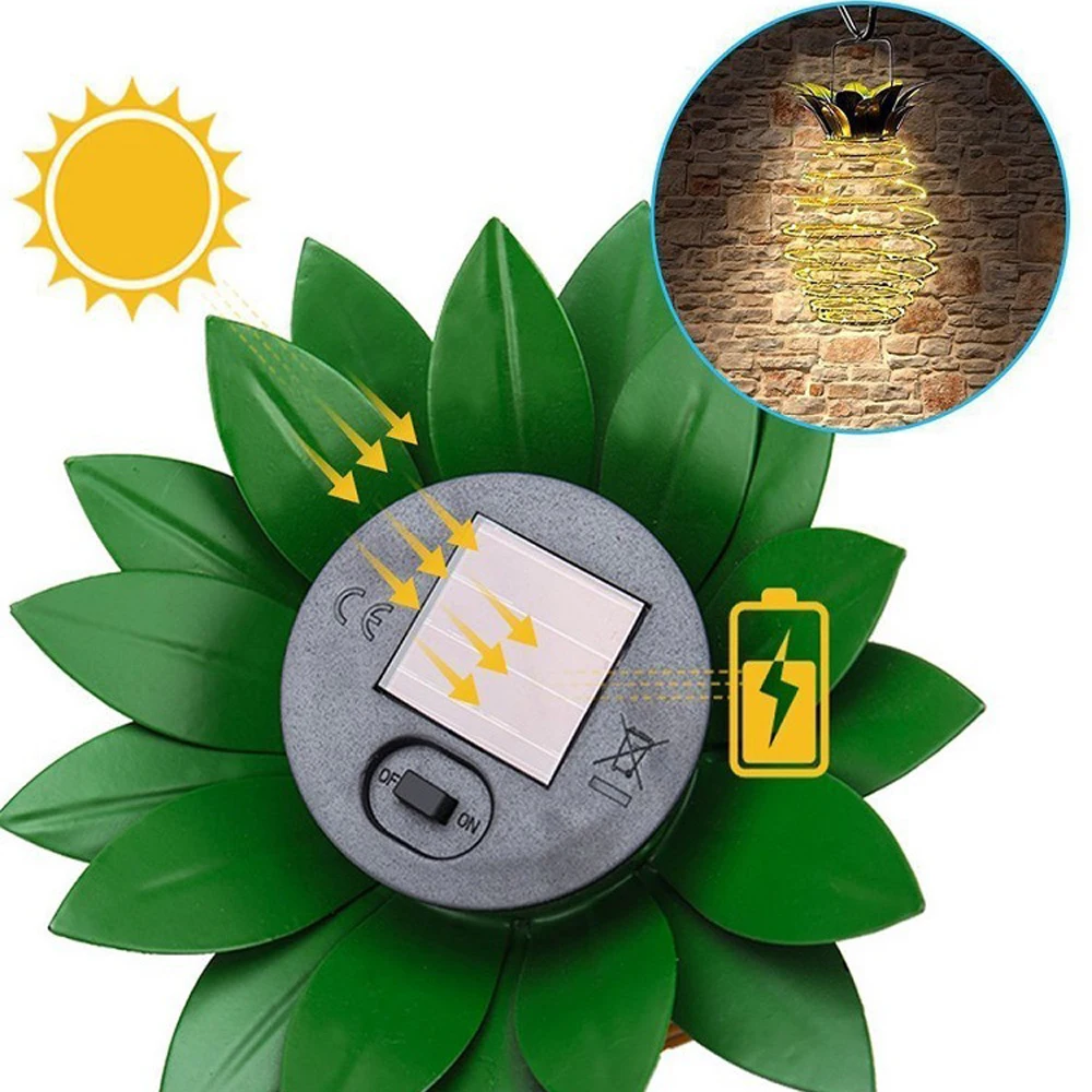 Особенности: 1. Изысканная и практичная Форма: креативная и Изысканная форма ананаса, легко переносится, переносится. 2. Простой в использовании, включите светильник с помощью выключателя включения/выключения, затем Повесьте его на место, где вы хотите декор, и убедитесь, что светильник от солнца может достигать. Со встроенной солнечной панелью, подвесные солнечные садовые огни будут включаться автоматически в сумерках и заряжаться в дневное время. 3. Этот светильник также может быть ручной, и он может быть осуществлен, когда приходит праздник или когда вы ходите ночью. Спецификация: Товар: Солнечный фонарь «ананас» Уровень защиты: IP65 Номинальная Мощность: 0,3 W Напряжение: 5 В Время солнечного света: 8 ч Продолжительность жизни: 3000h Светильник Цвет: теплый белый светильник Светильник Количество: 24 светильник s Батарея: батарея AA Емкость аккумулятора: 600 мАч Время зарядки: 8 ч Размеры: 22*15,5 см Посылка включает: 1 шт. * Солнечный фонарь «ананас»