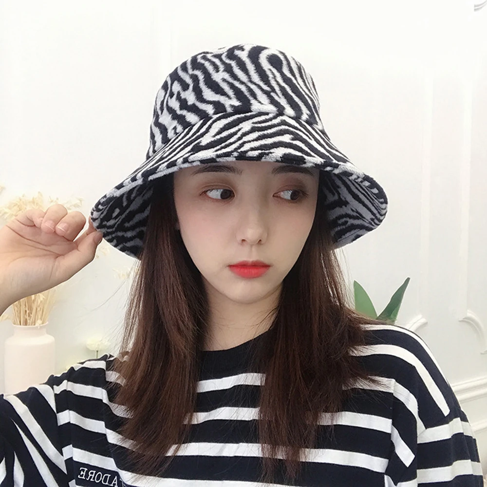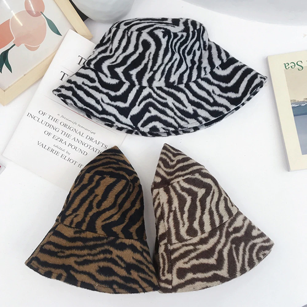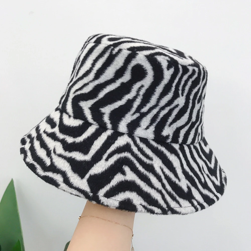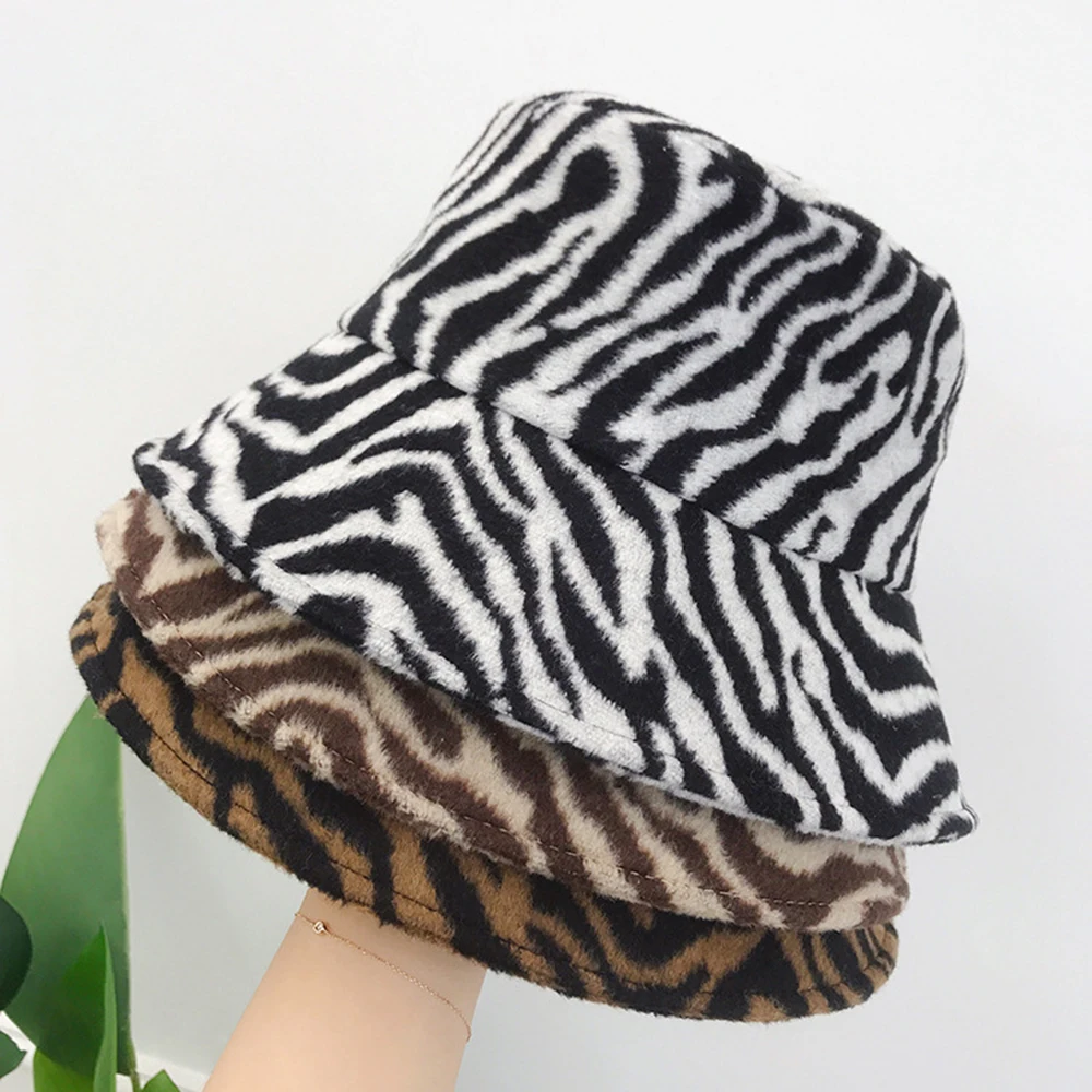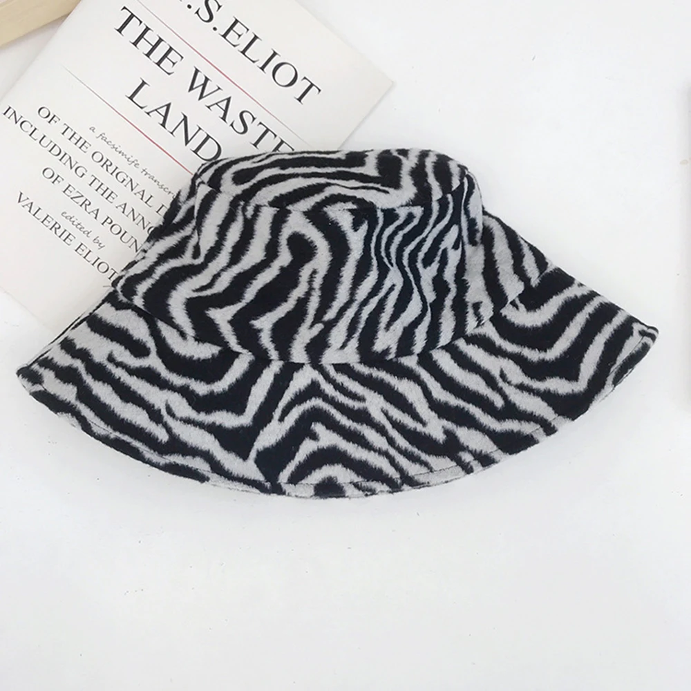 Зимняя теплая Панама, пушистые плюшевые толстые шапки для рыбаков, модные теплые зимние шапки с принтом зебры