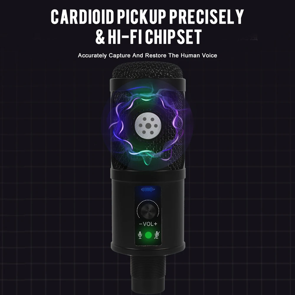 5. Удобная металлическая конструкция-прочная металлическая конструкция, компьютерный usb-микрофон с удобной ручкой регулировки громкости.