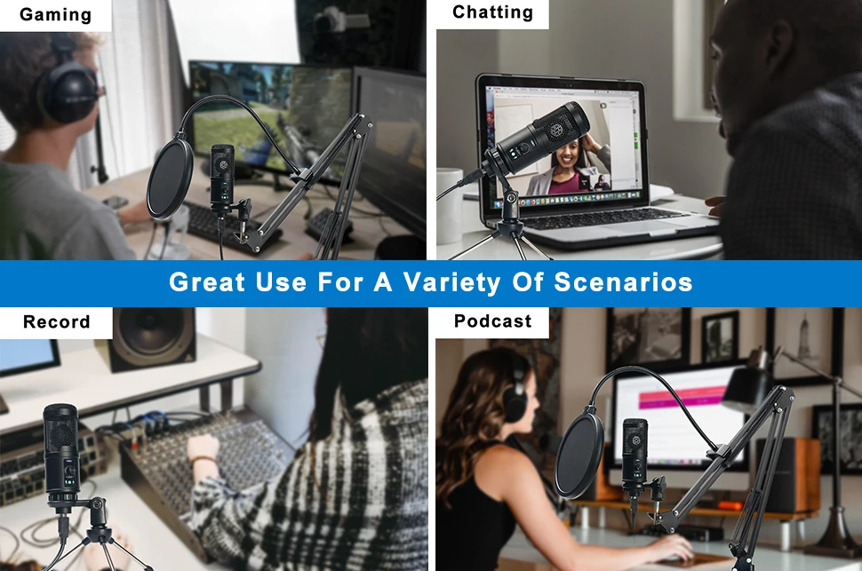 1. USB PLUG And PLAY-этот usb-микрофон обеспечивает прямое подключение к подключению и воспроизведению для ПК-компьютера или ноутбука. Легко получить высококачественный звук для вашей голосовой и компьютерной аудиозаписи.