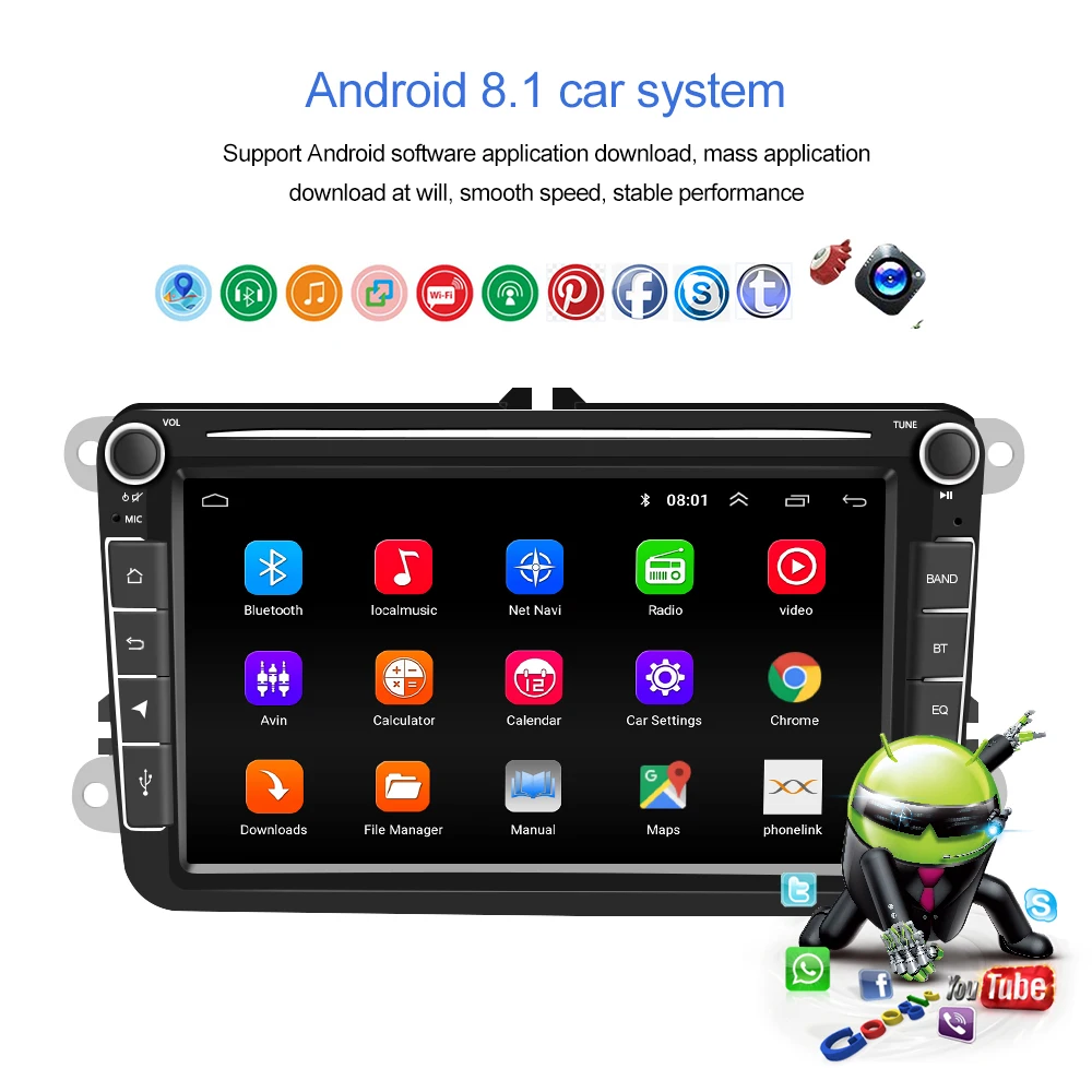 Volkswagen Skoda Octavia Golf 5 6 способов Passat B6 Jetta Polo Tiguan проигрыватель аудио Android 8,0 четырехъядерный автомобильный DVD GPS Navi