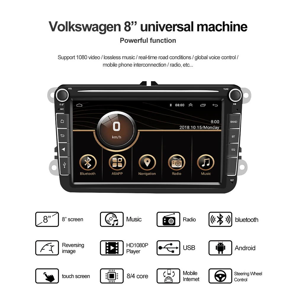 Android 8,1 автомобильное радио с GPS, 2 Din Универсальный медиаплеер для Volkswagen, Nissan, Hyundai, Kia, Toyota CR-V, автомобильное радио, стерео