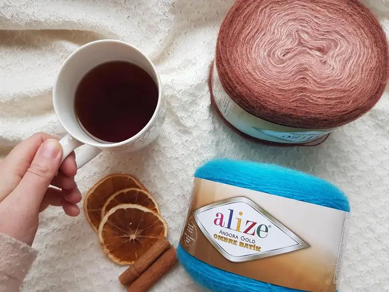 Alизе Ангорская Золотая Омбре батик пряжа для торта