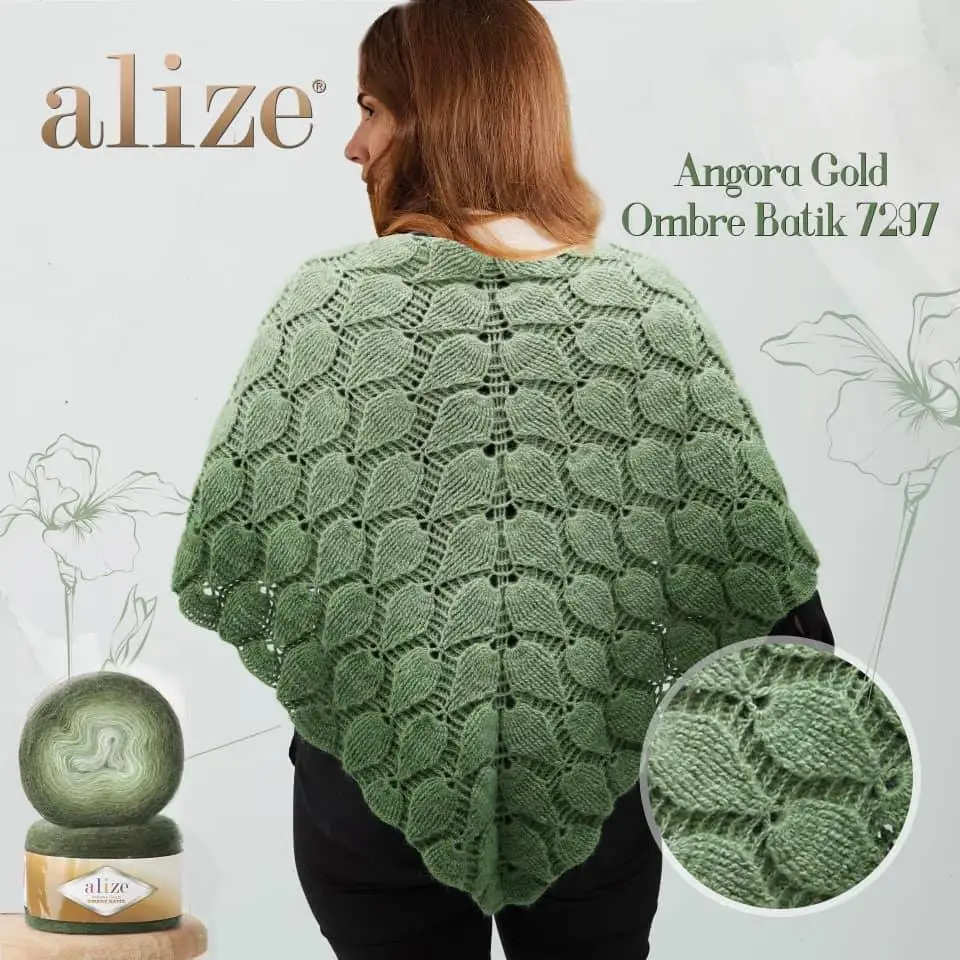 Непрерывно с его мячом спроектирован как 150 гр; Шали, жилеты и много различных предметов одежды могут быть трикотажные. Если больше или больше продуктов желают быть вязанными, более длинные переходы Омбре можно получить с помощью 2 шариков одного цвета вместе.