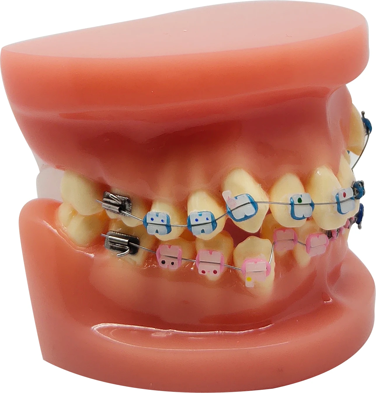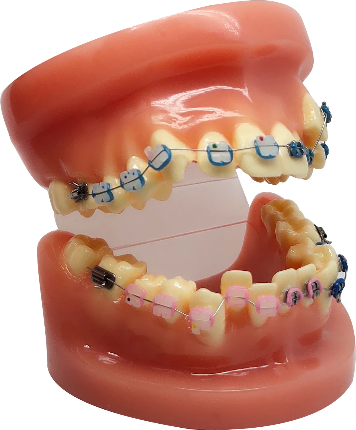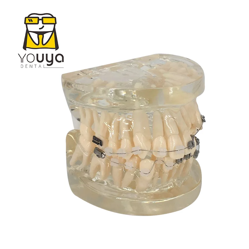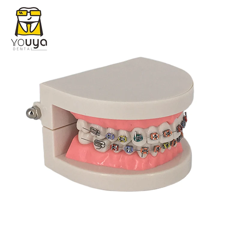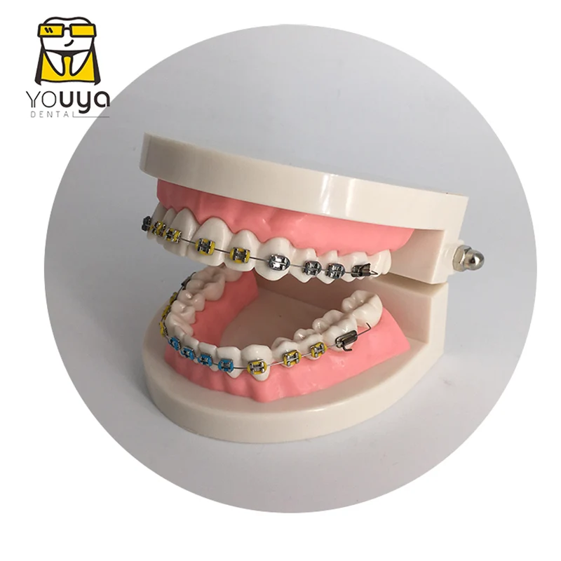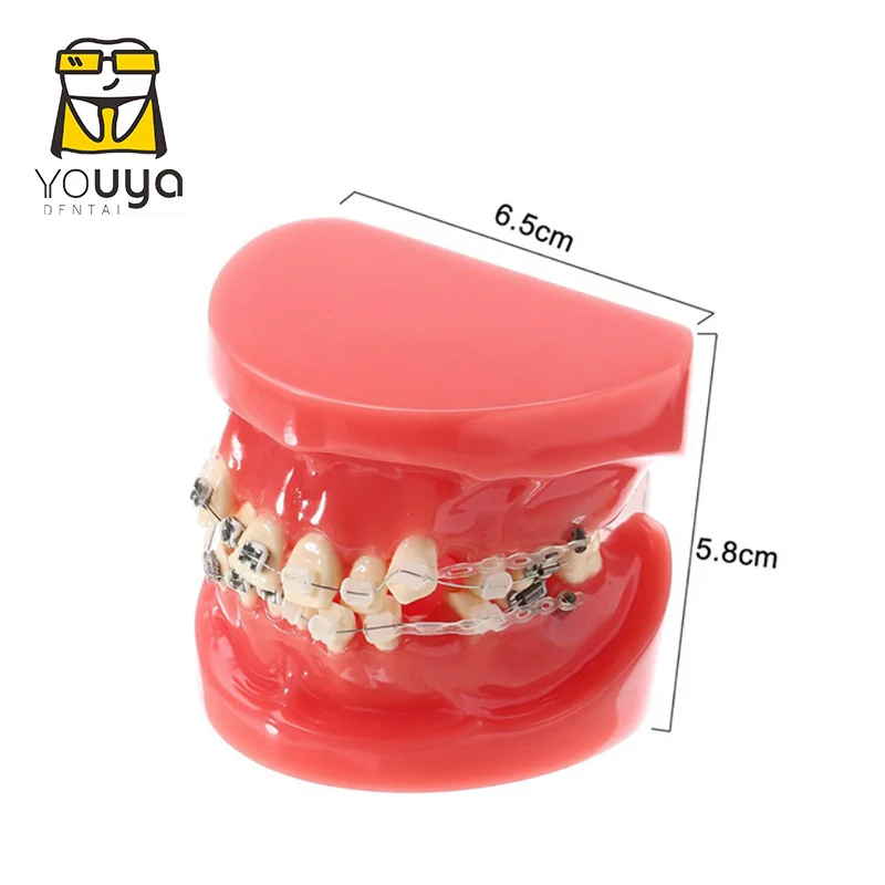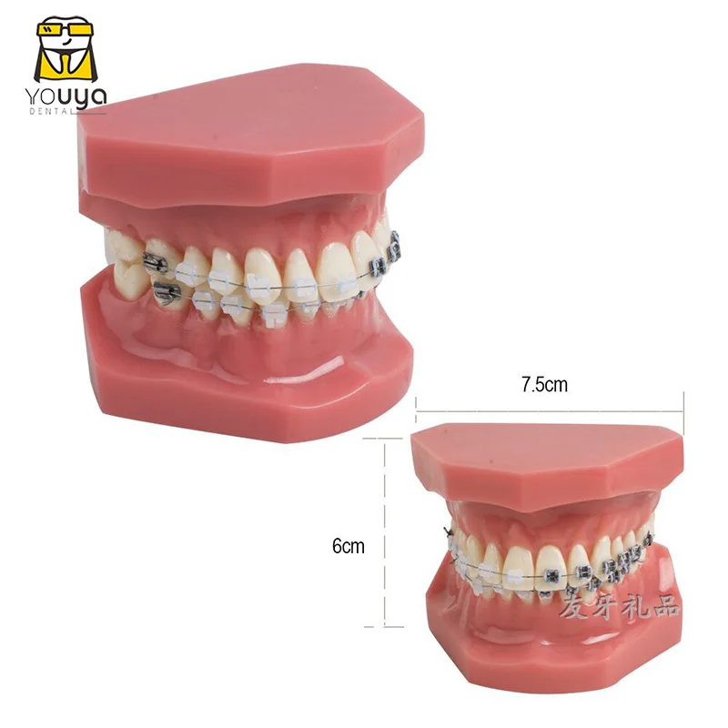 Ортодонтическая модель Malocclusion Ортодонтические скобы Половина металла и половина керамики Этот продукт имеет очень плохой рост зубов, поэтому он очень подходит для стоматологов для изучения и практики ортодонтиков