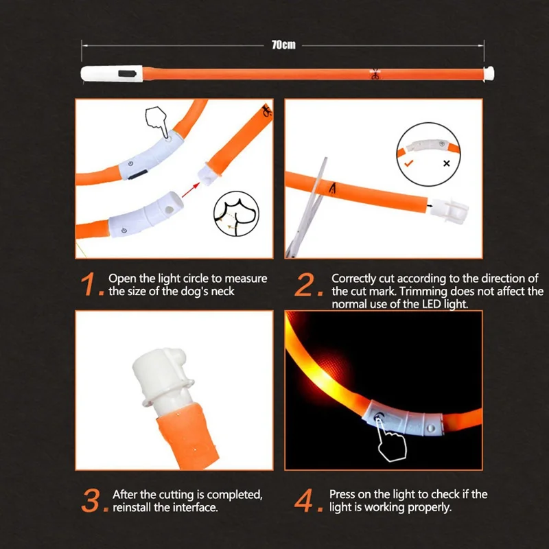 USB безопасный предупреждающий светодиодный перезаряжаемый Регулируемый изменяемый силиконовый светящийся ошейник для собак для домашних животных, кошек, ночных упражнений, аксессуары для домашних животных