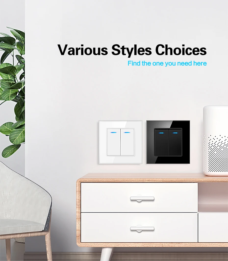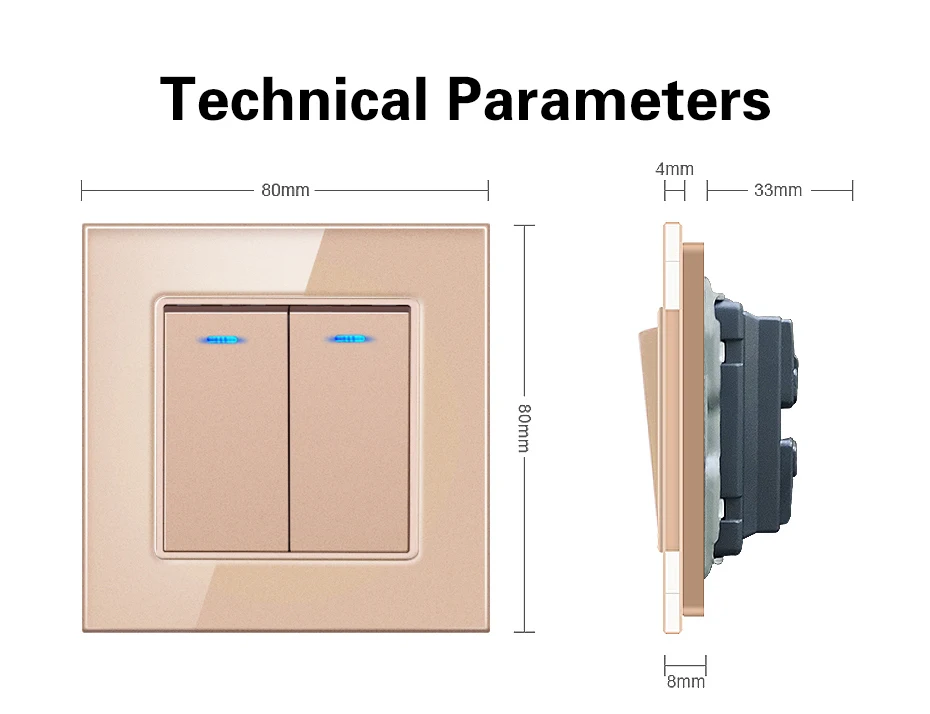 1. Название бренда: UBARO 2. Кнопка: 1 банда, 2 банды, 3 банды на выбор 3. Цвет: черный, белый, золотой, серый 4. Размер: 8,6*8,6*3,5 см/3,4*3,4*1,4 "(Д * Ш * В) 5. Ток: 10A 6. Ватт: 5-150 Вт/комплект 7. Рабочее напряжение: 100-240 В переменного тока 8. Рабочая температура: -20 ℃ ~ + 50 ℃ 9. Относительная влажность: 10% ~ 90% 10. Механический срок службы: 100000 раз 11. Сертификация: CE,CCC ,ROHS 12. Гарантия: 1 год