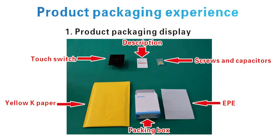 1 * сенсорный переключатель 2 * длинный винт 1 * Защитный конденсатор 1 * Руководство пользователя 1 * коробка для посылка