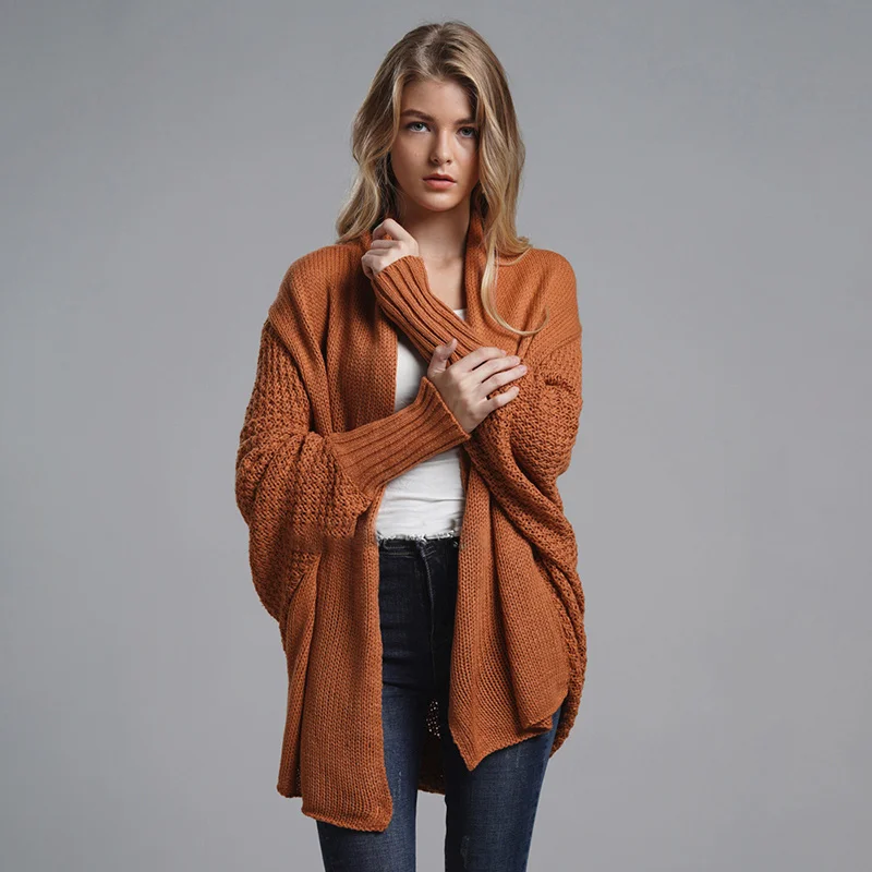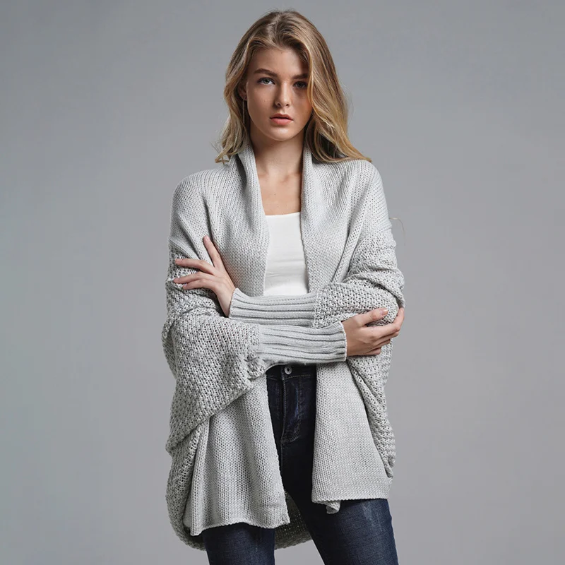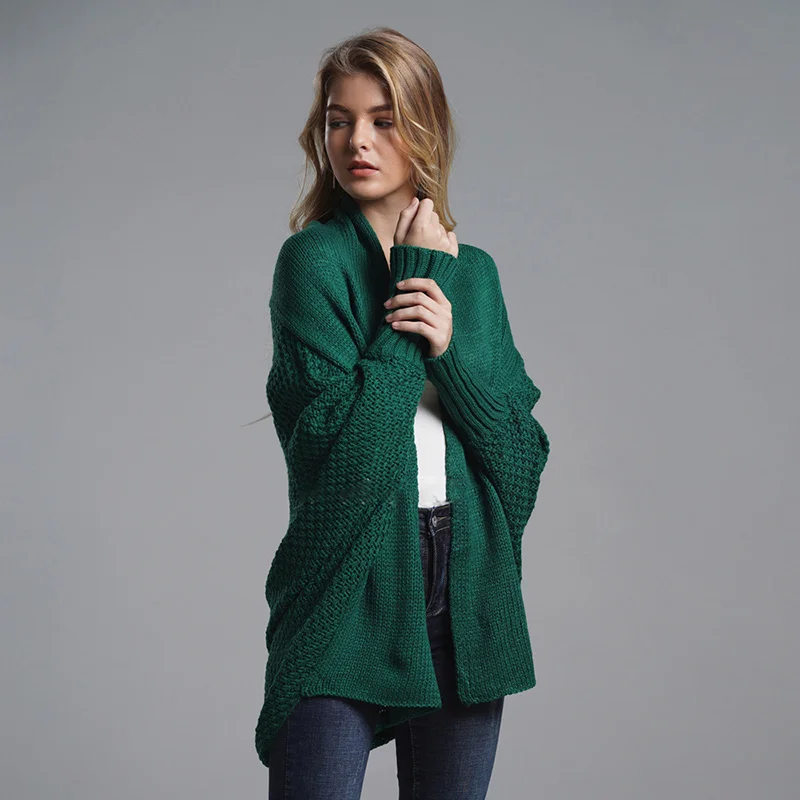 Anbenser Oversized Sweater Cardigan Knitted Women's Clothes Patchwork Batwing Sleeves Outerwear Female Winter Plus Size Overcoat