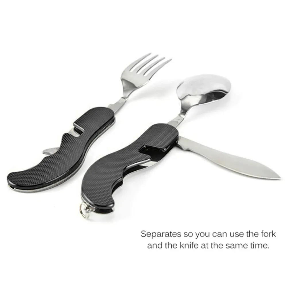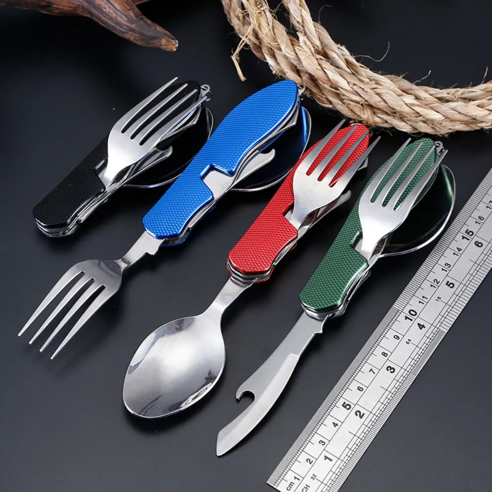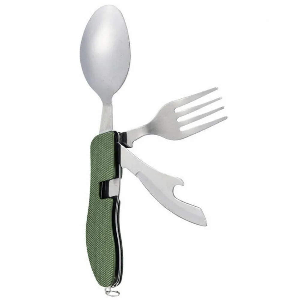 Особенности: Многофункциональность: съемная вилка, ложка, нож и открывалка для бутылок, вы можете использовать его во время путешествий или отдыха на природе. Высокое качество: прочный, компактный, без ржавчины и долговечный материал из нержавеющей стали. Легко носить с собой, легкий и компактный, поэтому вы можете взять его в любое время. Разделяет так что вы можете использовать вилку и нож одновременно. Хороший выбор для кемпинга, походов, пикников, даже дома. Характеристики: Тип изделия: посуда для улицы Материал: нержавеющая сталь + алюминий Цвет: зеленый/синий/красный/черный Количество: 1 шт. Общая длина: 18 см/7,1" Размер: 10,5*4,0*3,8 см/4,1*1,6*1,5" Вес нетто: 115 г/4,1 унции Комплектация: 1 * посуда для улицы (вилка/ложка/нож/открывалка для бутылок)