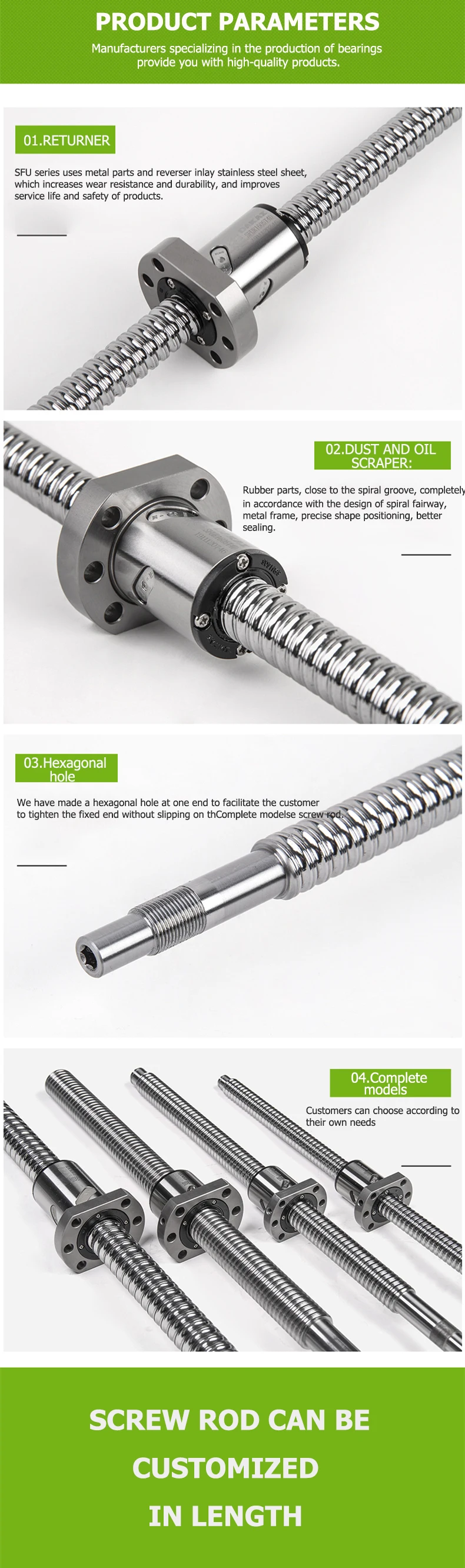 Шариковые винты используются в самолетах и ракетах для перемещения поверхностей управления, особенно для электрических мух проволокой, И в автомобильном усиленном руле для перевода поворотного движения с электродвигателя на осевое движение рулевой рейки. Из-за небольшого трения, они также используются в станках, роботах и прецизионном сборочном оборудовании. Шариковые винты высокой точности используются в steppers для производства полупроводников. Номер модели: SFU2005 Название продукта: шариковый винт Цвет: Серебристый; Материал: металл Диаметр: 20 мм; Дополнительная длина: от 250 мм до 2000 мм; (общая длина, включая конечную механическую часть) Содержание упаковки: 1 x шариковый винт, торцевая обработка; 1 x шариковая гайка О настройке: Мы предлагаем услуги по настройке согласно вашему чертежу или запросу, пожалуйста, предоставьте чертеж и свяжитесь с нами перед размещением заказа. Пожалуйста, поймите, что это может занять некоторое время для завершения обработки, и обычно время обработки составляет около 3-5 рабочих дней. Пожалуйста, обратите внимание, что для крепления и демонтажа шариковых гаек требуются профессиональные инструменты или профессиональные материалы, в противном случае, мы не несем ответственности, если был какой-либо ущерб, нанесенный вами.