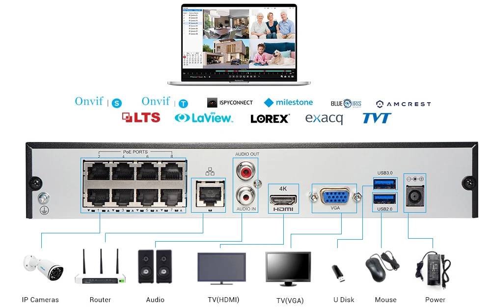 Поскольку система поддерживает протокол ONVIF, она подключается к вечерние ним IP-камерам. Вы можете в полной мере использовать свои камеры и иметь полный контроль над ними. Таким образом, вы можете почти закрыть каждый уголок вашего дома.