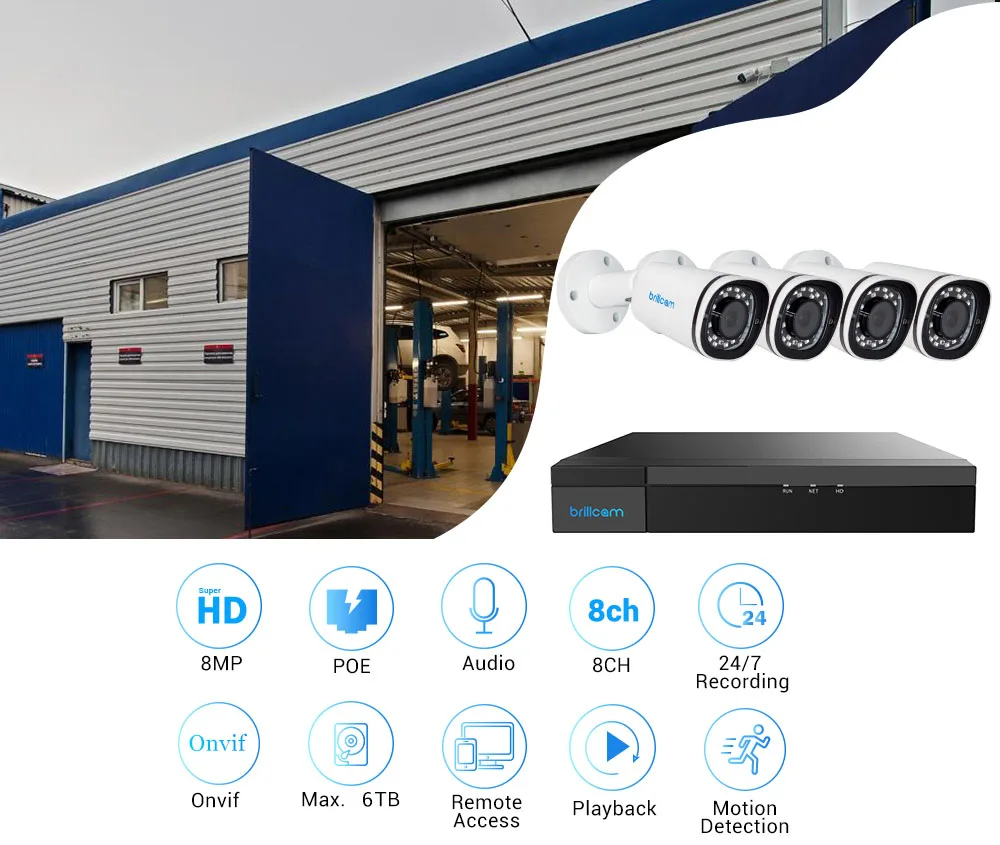 Brillcam 8CH 4K Ultra HD PoE H.265 сетевая система видеонаблюдения