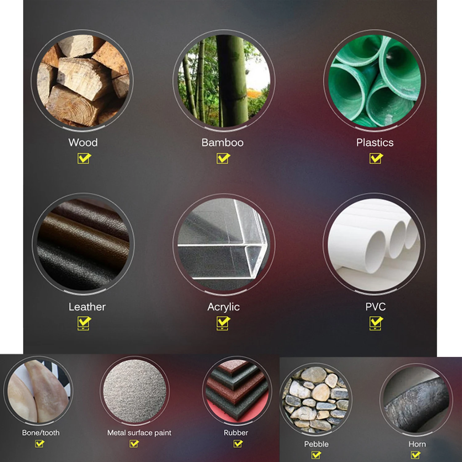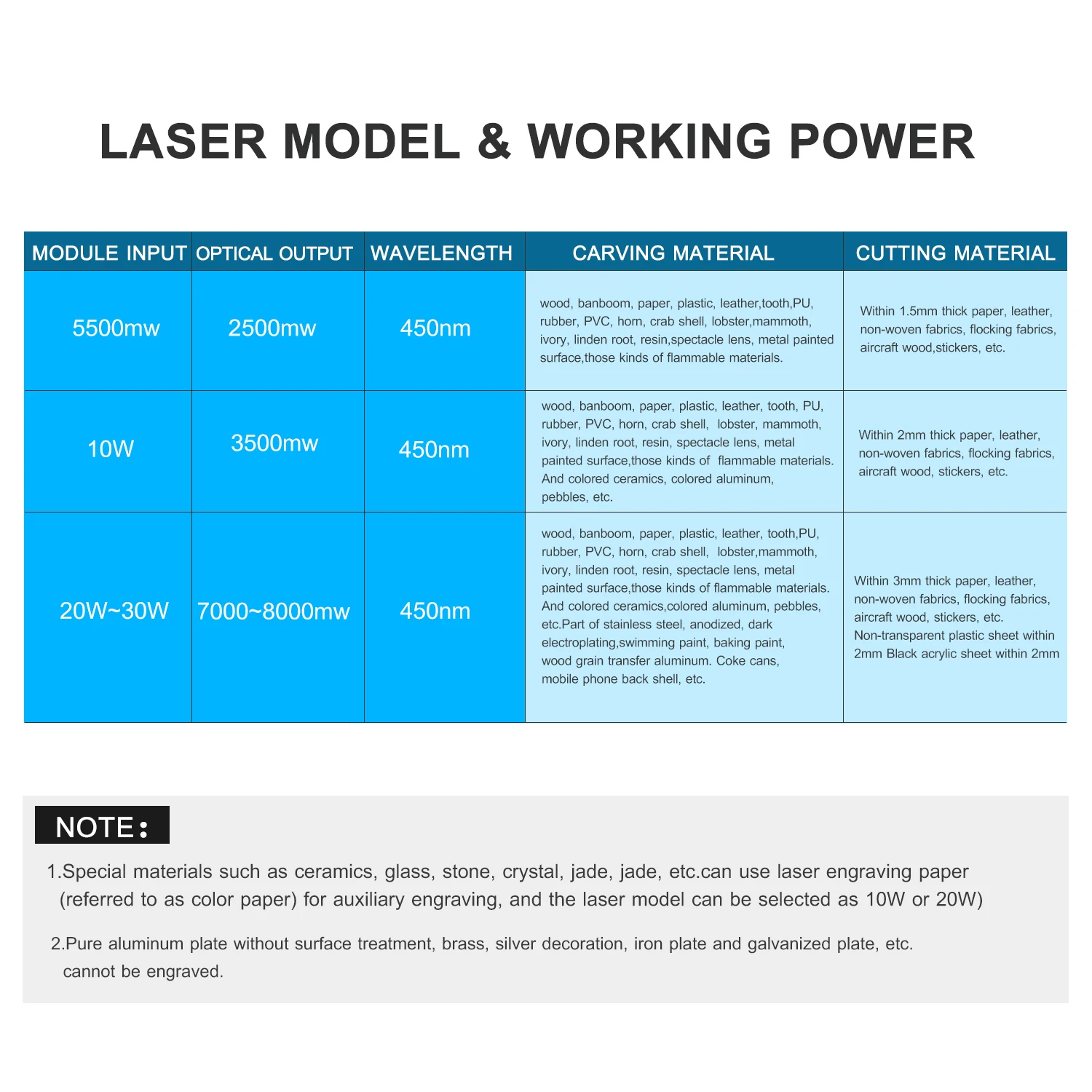 В комплекте лазерная головка мощностью 40 Вт, может быть быстрая резьба из нержавеющей стали 201/304, титановой стали и анодированного алюминия, камня, МДФ, бальзы, дерева, ткани, пластика, печатной платы, бумаги, бамбука, рога, кожа, губчатая бумага и т. Д., кроме меди, алюминия r aw материалов; Резка бумаги толщиной 3 мм, non-waven, Черный Акрил толщиной 2 мм, ПВХ и т. д.