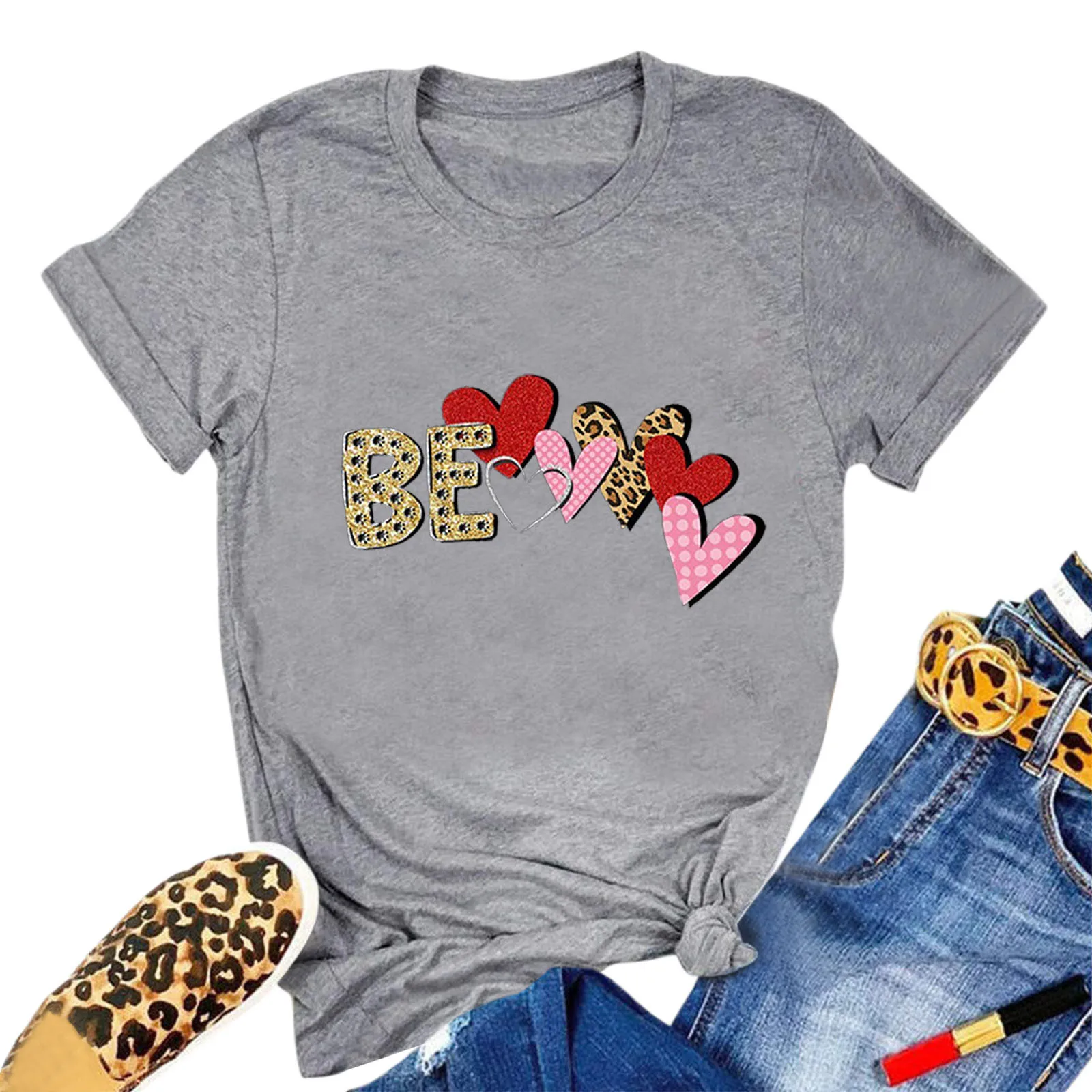 Женский день Святого ВалентинаПовседневная рубашка с буквенным принтом; Футболки с короткими рукавами; Туника; Блузка