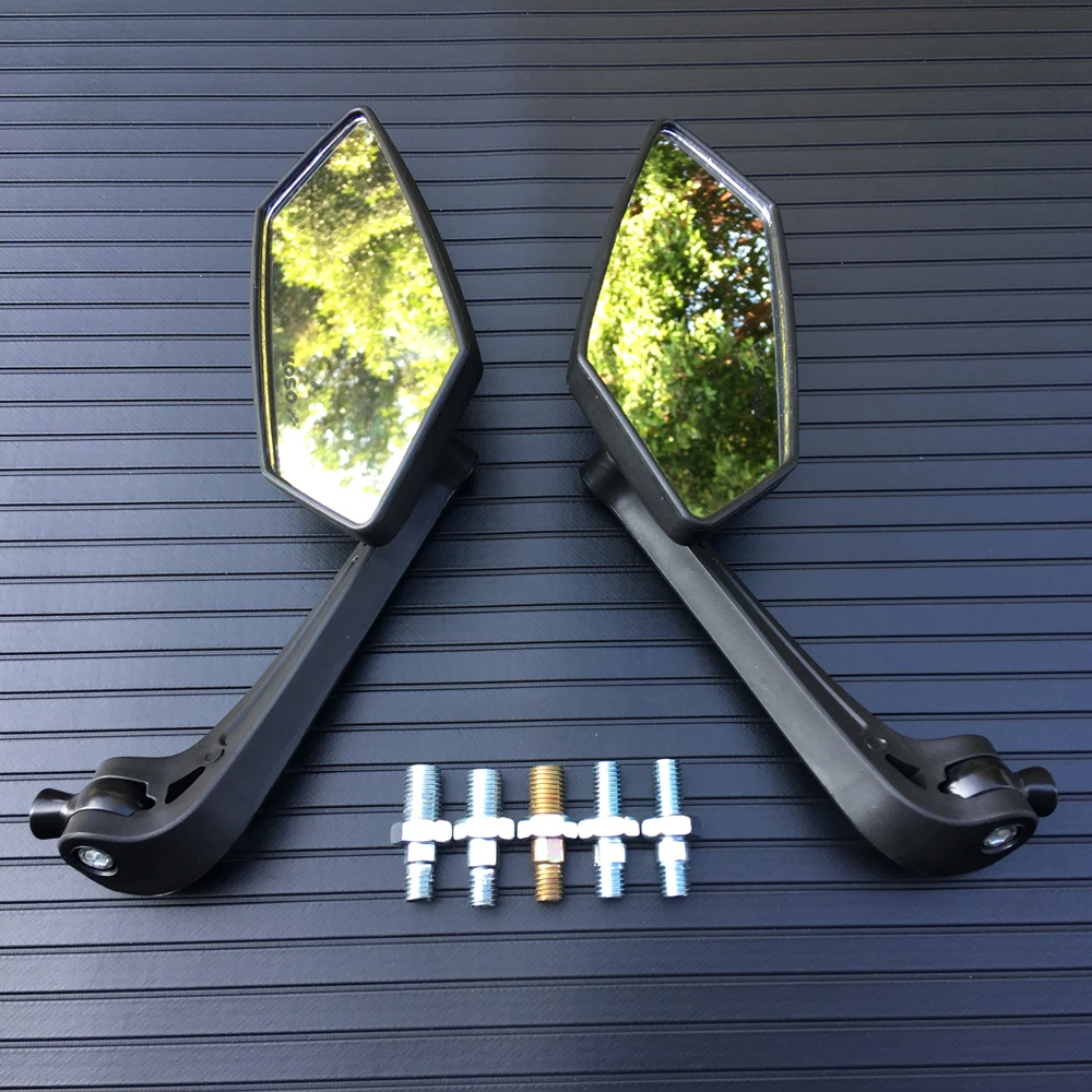 -Зеркала из АБС-пластика мягкие, но гибкие, подходят для мотоциклов с низкой вместимостью, скутеров, vespas, квадроциклов, не подходят для мотоциклов высокой емкости, так как они будут вибрировать.