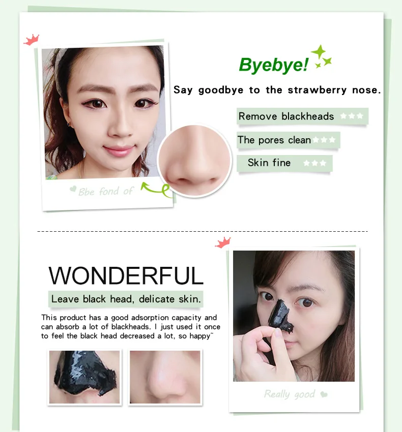 Продукт может глубоко проникать в поры, смягчать кожу, адсорбцию черных точек, принимать черные точки и скрывать грязь от пор, очищать и увлажнять кожу, удалять черную голову, питая кожу, сближение пор, снимает сухость и шероховатость кожи, делает кожу нежной и гладкой.