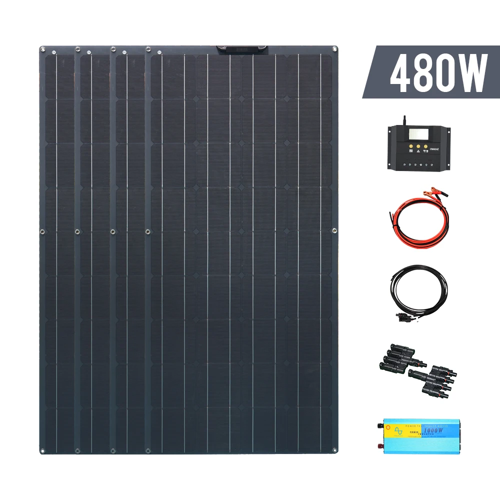 Набор de panneau solaire de 480 Вт Système complet 4*120 Вт Chargeur 12 В/24 В Baterry Onduleur de 1000 Вт Efficacité élevée des cellules pour voiture RV ECT.