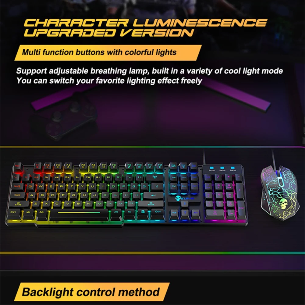 Игровой коврик для мыши и клавиатуры T6 с USB-подсветкой, 2400DPI