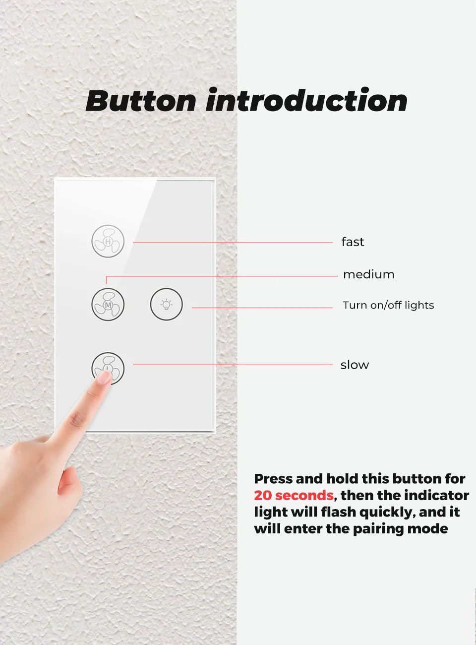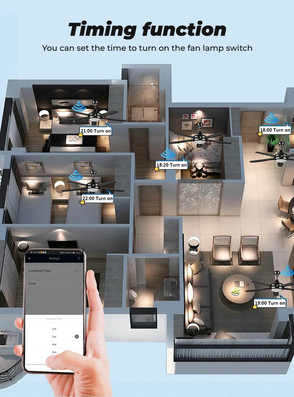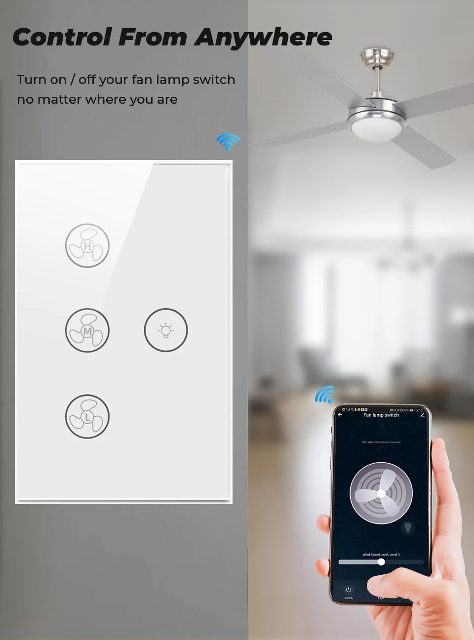 Вы можете установить время для включения лампы вентилятора swilch