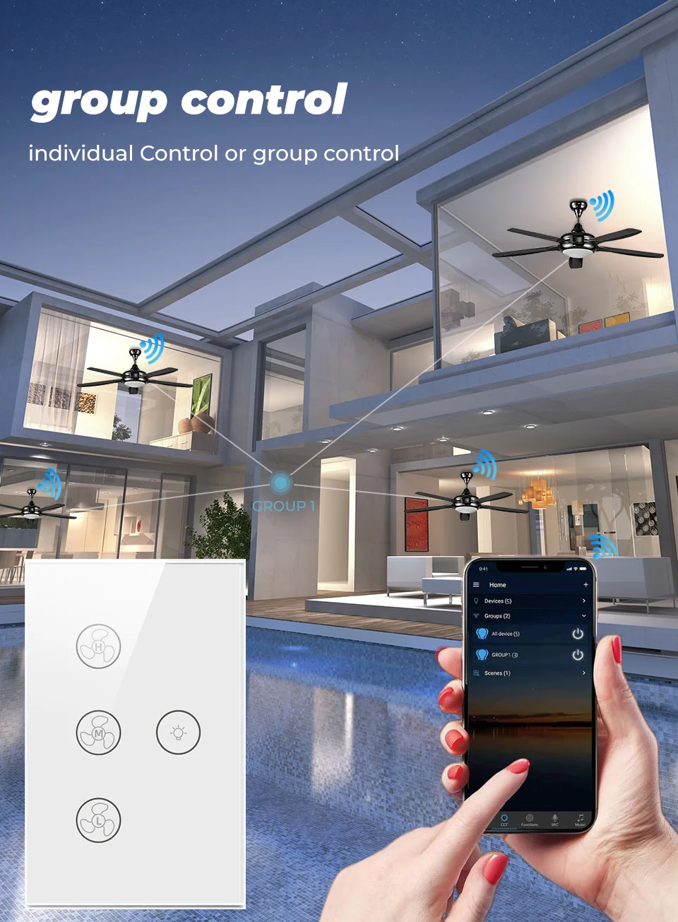 Управляйте вентилятором и светильник на вентиляторе