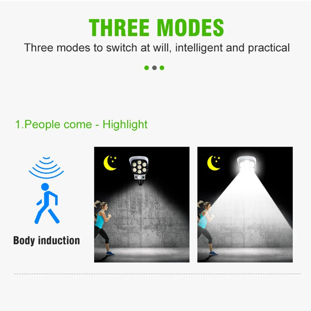 ▪【 2 в 1 солнечный светильник и муляж системы безопасности камеры-Держите вашу домашнюю собственность в безопасности и охранников. С 77 яркими светодиодами, активированным движением, гладким низкопрофильным дизайном. Плюс Реалистичная камера безопасности. Обнаружение нарушителей держаться подальше от вашего дома ▪【 3 светильник режим ing опционально 】- ① светильник выключается ночью, просто красный светильник мигает, сильный светильник включается при обнаружении движения; ② слабый светильник в ночное время, сильный светильник включается при обнаружении движения; ③ всегда светильник в режиме, красный светильник всегда мигает в любом режиме ▪【Долгое время работы с батареей 】-светильник безопасности с батареей 2400 мАч может обеспечить до 8 часов использования времени, дополнительная солнечная панель для простой установки без проводов и поглощает солнечную энергию под солнечный светильник, охрана окружающей среды и энергосбережение ▪【 Встроенный датчик движения PIR-светильник автоматически срабатывает при обнаружении движения на расстоянии 10-30 футов, в диапазоне 120 градусов в ночное время. Идеально подходит для сада двора лужайки патио гаража крыльца подъездной дорожки ландшафтной безопасности. Сделайте вашу жизнь более удобной ▪【Регулируемый и простой в установке 】-солнечный светильник довольно легко устанавливается. И вращение может регулировать оптимальный угол освещения и угол солнечной панели с легким, IP65 Водонепроницаемый идеально подходит для наружного использования